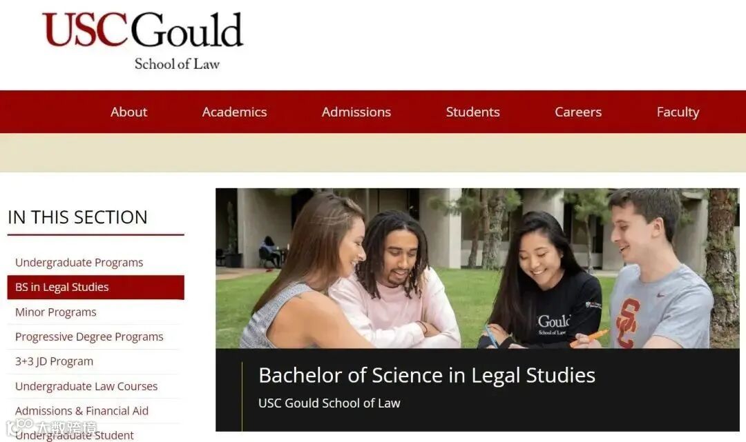 今年6月,南加利福尼亚大学(USC)的古尔德法学院(根据2022U.S.News最佳法学院排名位列第20位)宣布推出一个新的本科专业:法律研究专业,这也是USC法学院首次开设的四年制本科专业。该专业内容十分广泛,涵盖了多个领域,包括科技、社会学、经济学等等。