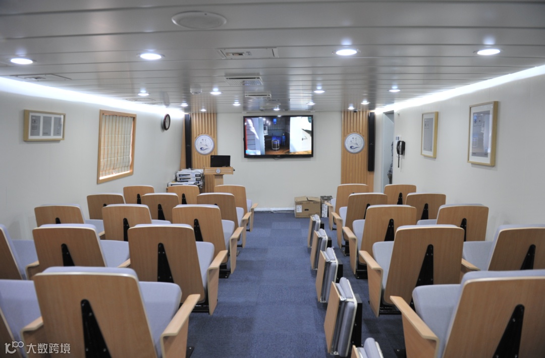 同时,具有1064㎡甲板作业面积,操控支撑系统可实现船上调查设备的起升、吊放和回收等功能,极大地提升了调查作业效率,海洋调查综合性能国际先进。