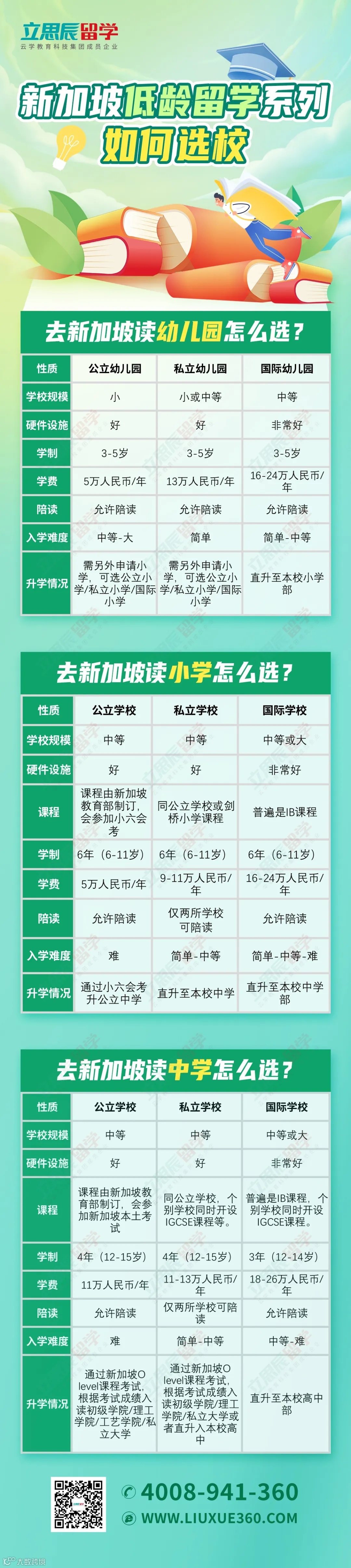 新加坡既有政府幼儿园、政府资助幼儿园,也有私立幼儿园以及国际幼儿园。除了政府幼儿园只接收新加坡公民以及PR以外,其他三类幼儿园,国际生都可以申请。