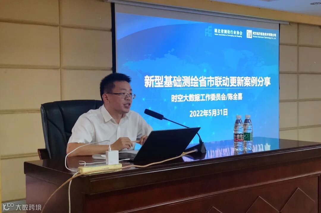 随后,武汉追月信息有限公司陈全喜副总经理、北京超图软件股份有限公司胡仁瑜总监分别为大家作了《新型基础测绘省市联动案例分享》、《新型基础测绘应用服务体系建设湖北经验探索》报告。陈全喜副总经理从新型基础测绘项目实践出发,为大家梳理了数据生产和联动更新机制,并详细介绍了咸宁新型基础测绘项目的实施过程,为大家提供了非常明确的实施思路。胡仁瑜总监则给大家分享了超图软件在新型基础测绘建设与时空大数据平台建设实施方面的丰富经验。