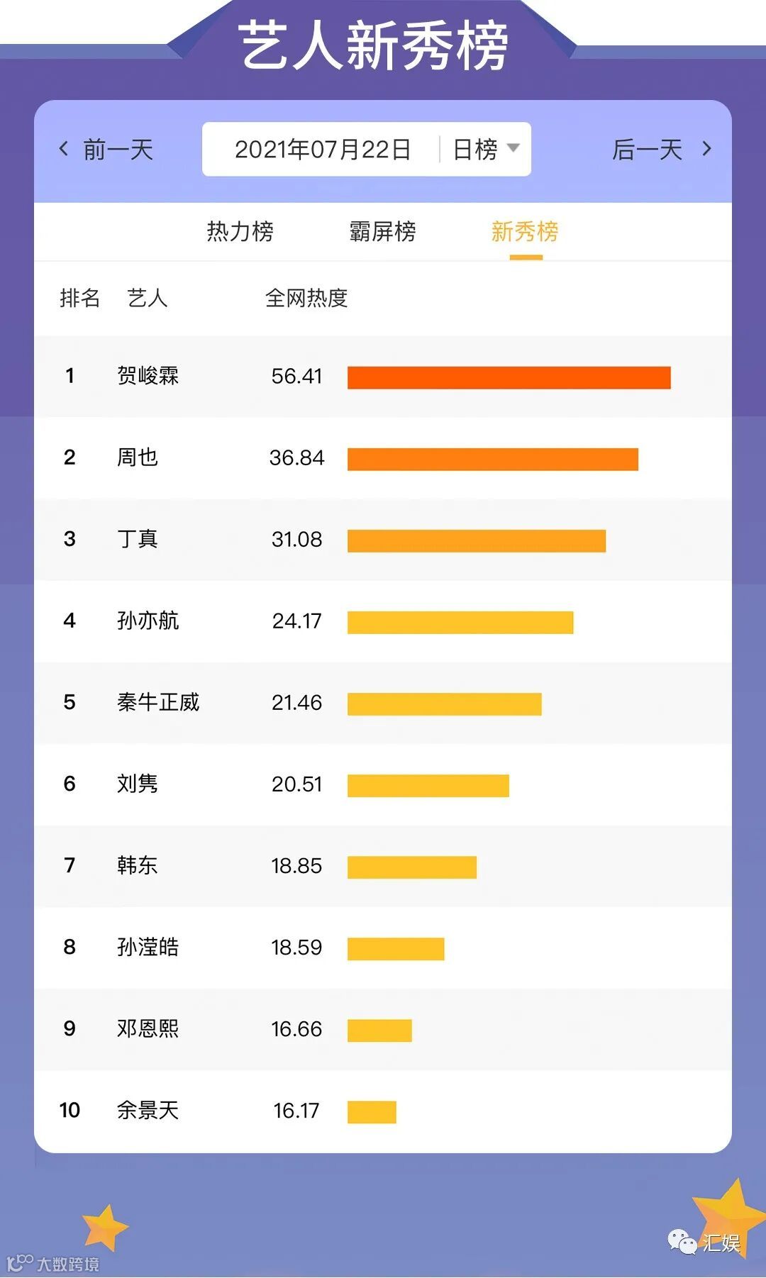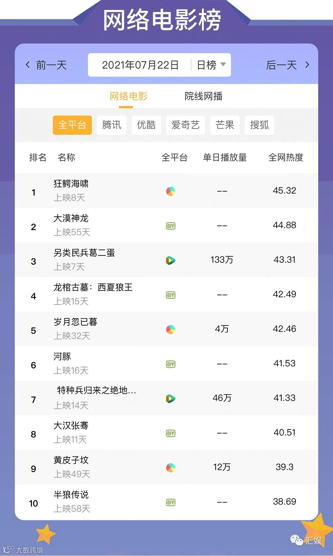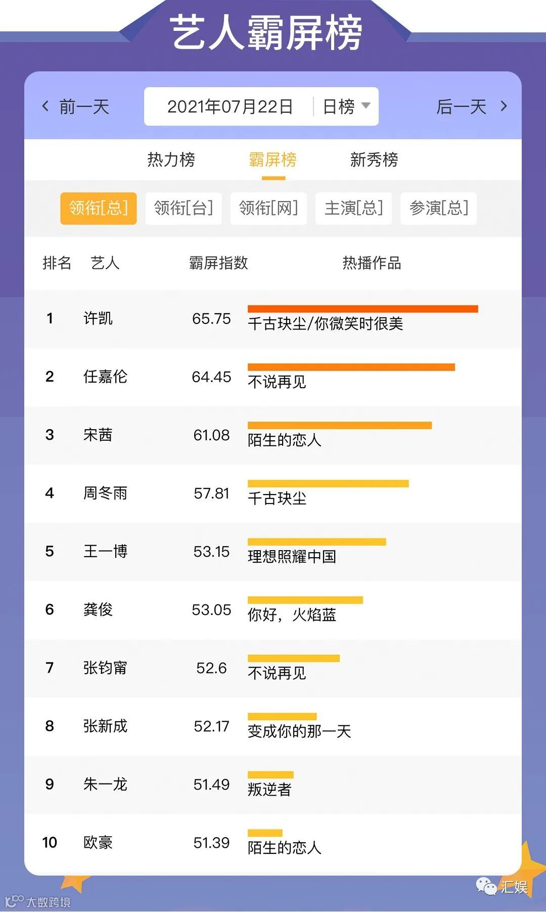 汇娱数据 | 2021.07.22 影视、综艺、艺人全网平台热度指数
