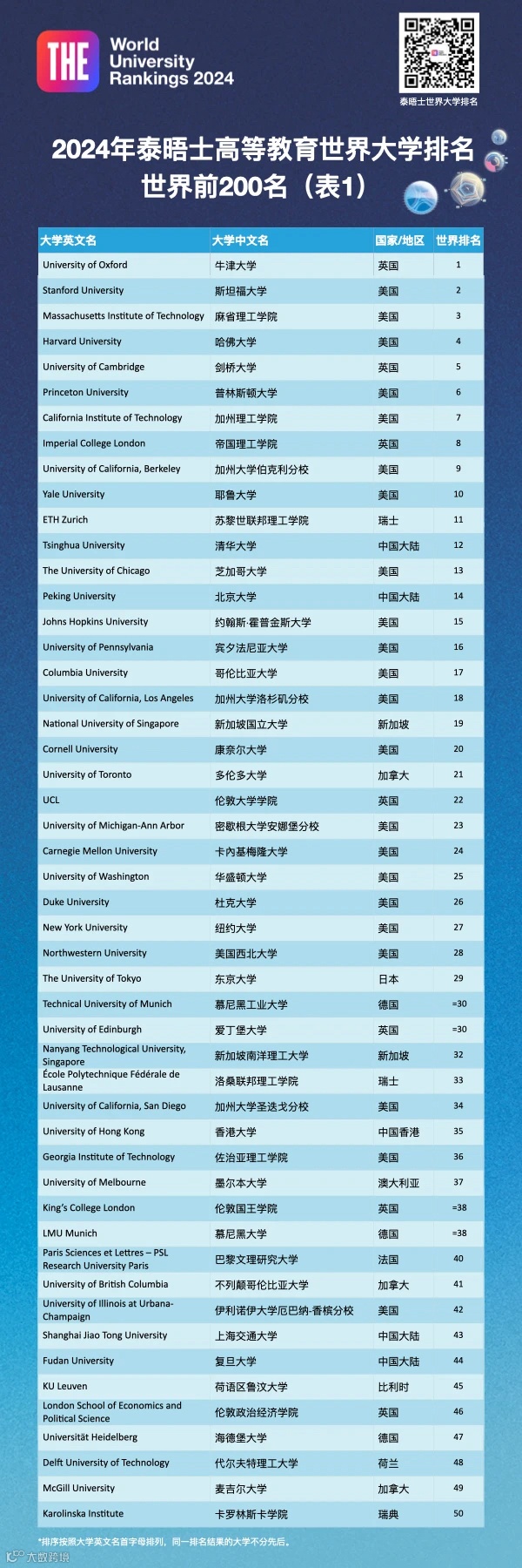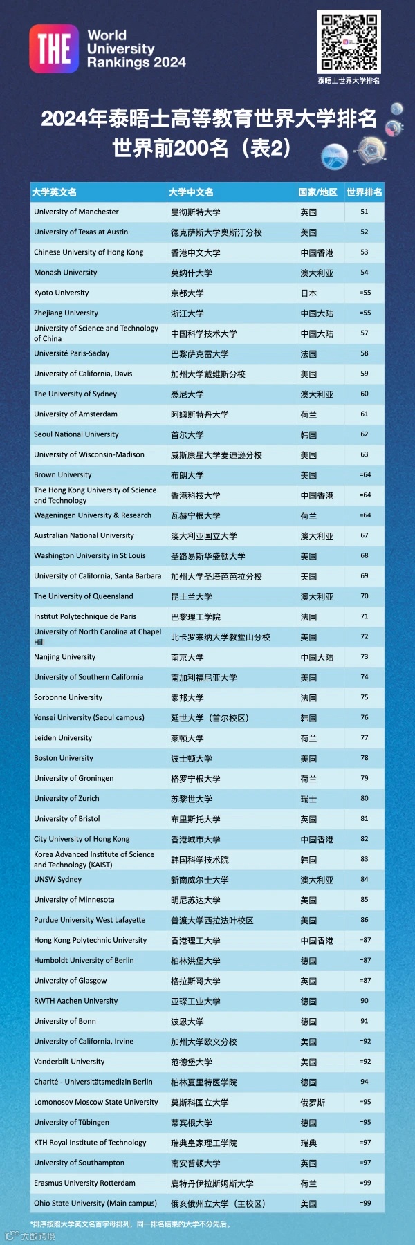 海外院校要求 :世界大学综合排名前150位的知名大学