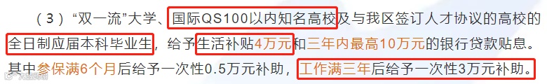 但是这里要跟大家强调一点:补贴虽诱人,但各地的申领要求甚至是各区的要求都大有不同。有的要求QS100的本科,有的要求QS200的硕士,在不同地区你能申领到的补贴也不一样。