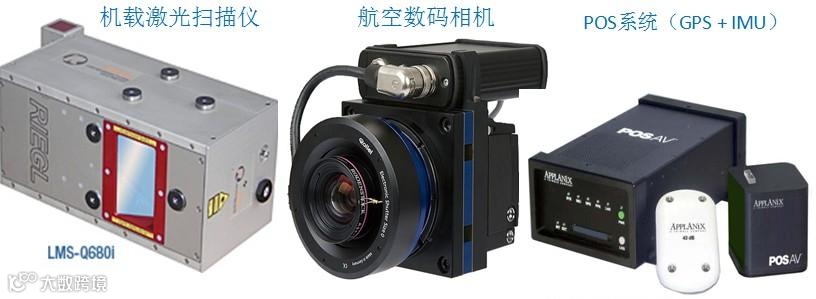 机载激光雷达测量系统设备主要包括三大部件:机载激光扫描仪、航空数码相机、定向定位系统POS(包括全球定位系统GPS和惯性导航仪IMU)。