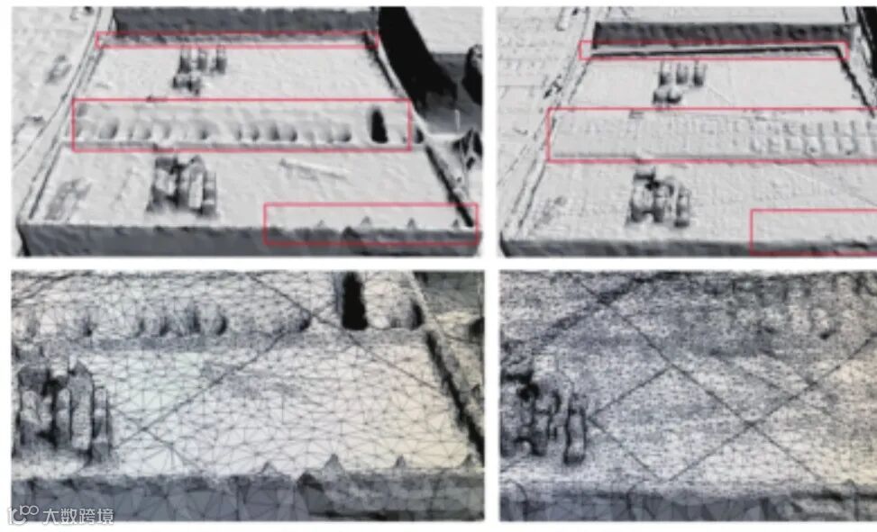 (a)倾斜摄影三维白模 (b)融合LiDAR点云后的三维白模
