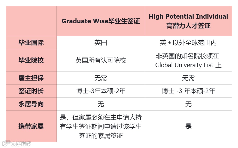 跟HPI比起来,Graduate Visa仅限英国高校的毕业生,需要持有有效的 Tier4学生签证,而且对入境的时间也有限制。