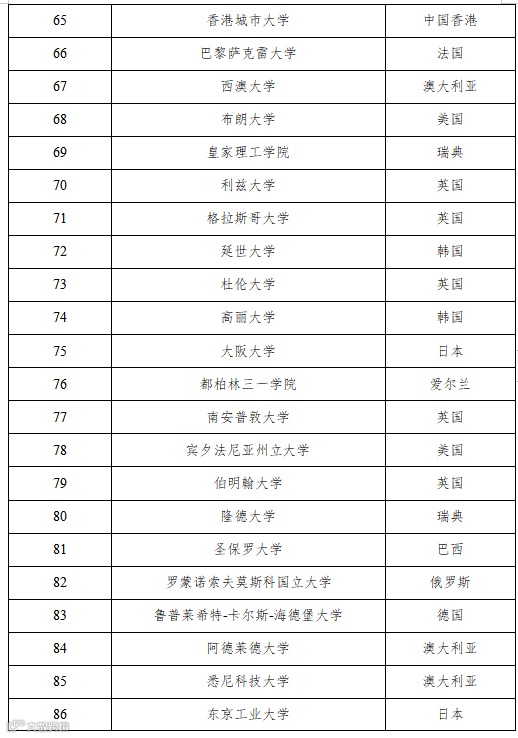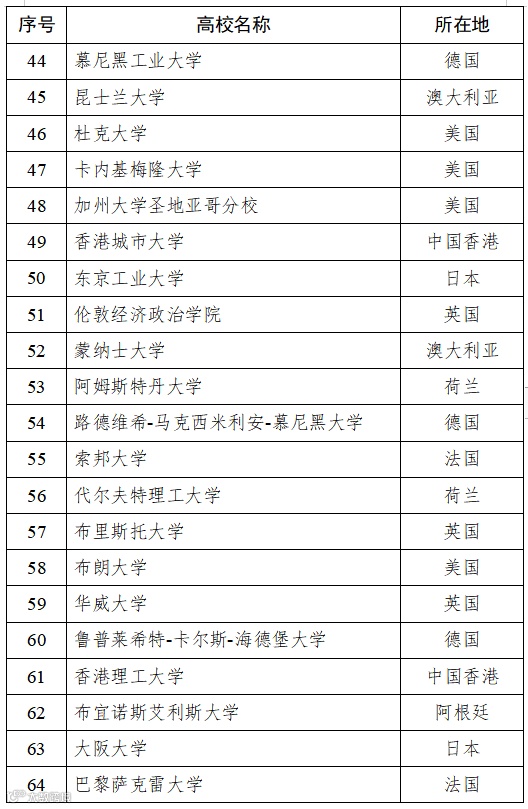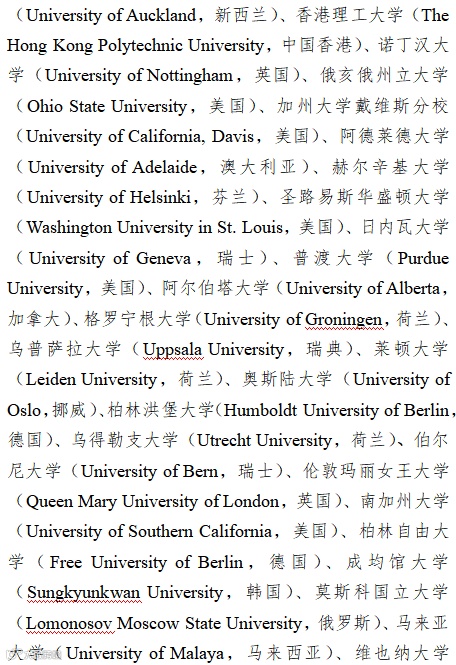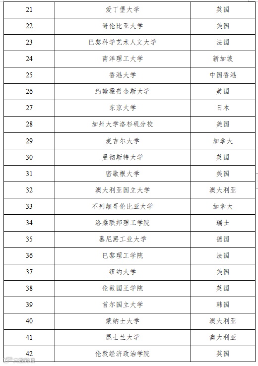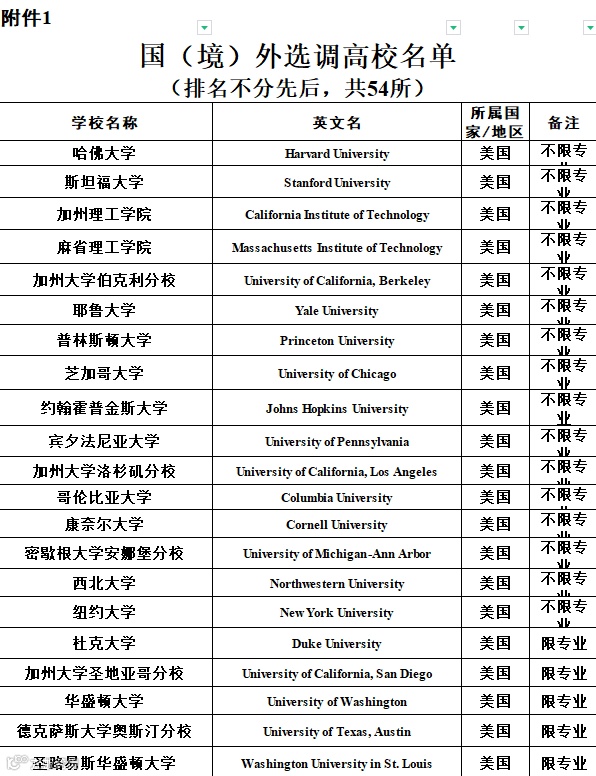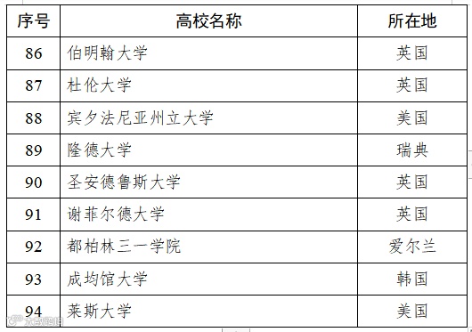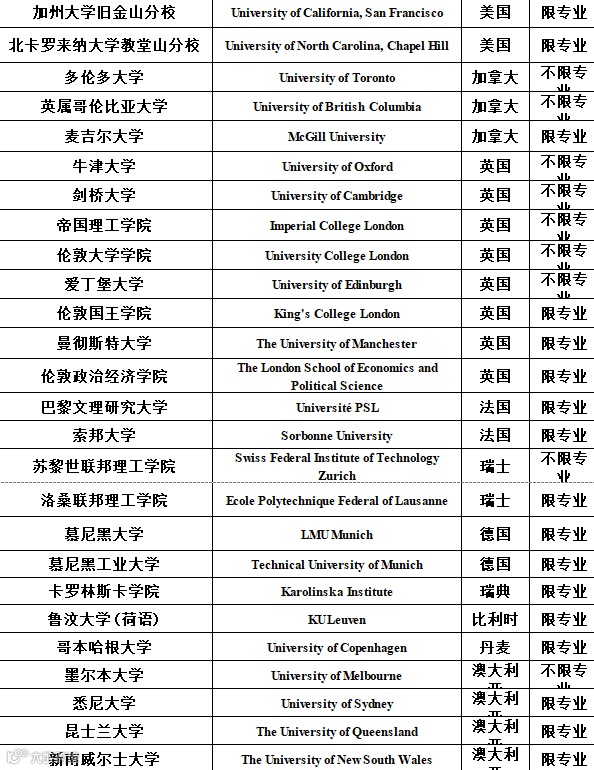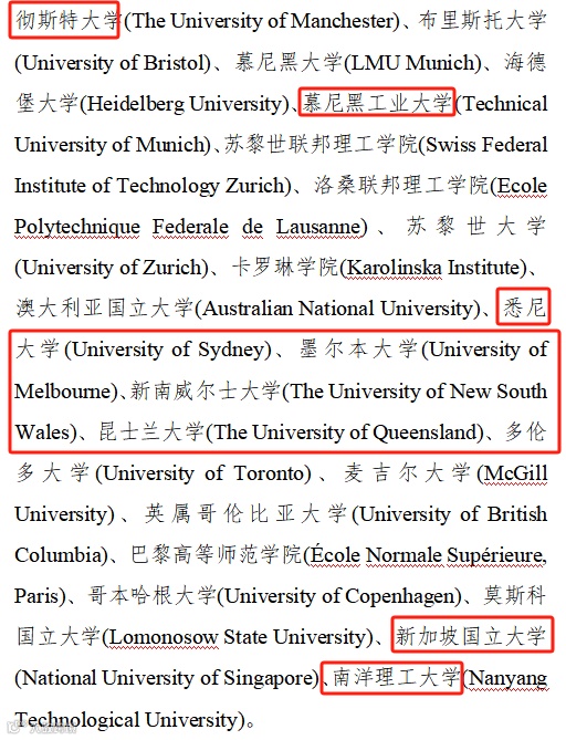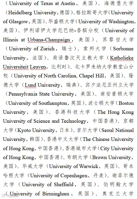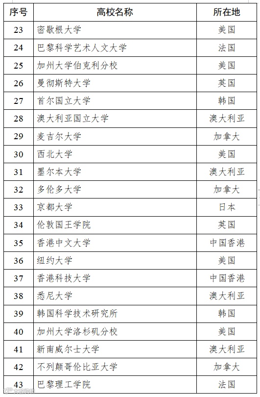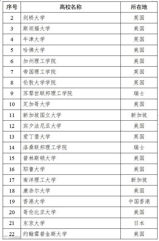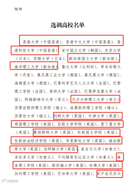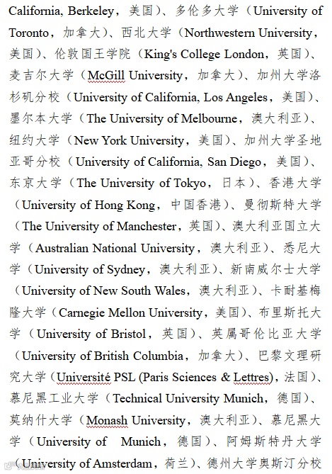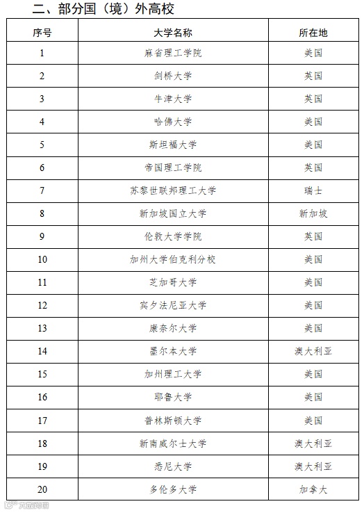 国(境)外部分知名院校。所列国(境)外知名高校中,在规定时限毕业且获得国家教育部学历学位认证的硕士研究生及以上学历学位毕业生