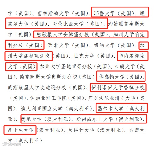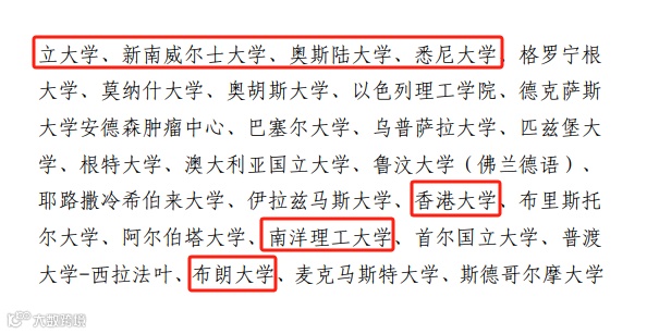 7所澳洲大学:墨尔本大学、新南威尔士、悉尼大学、莫纳什、昆士兰等校