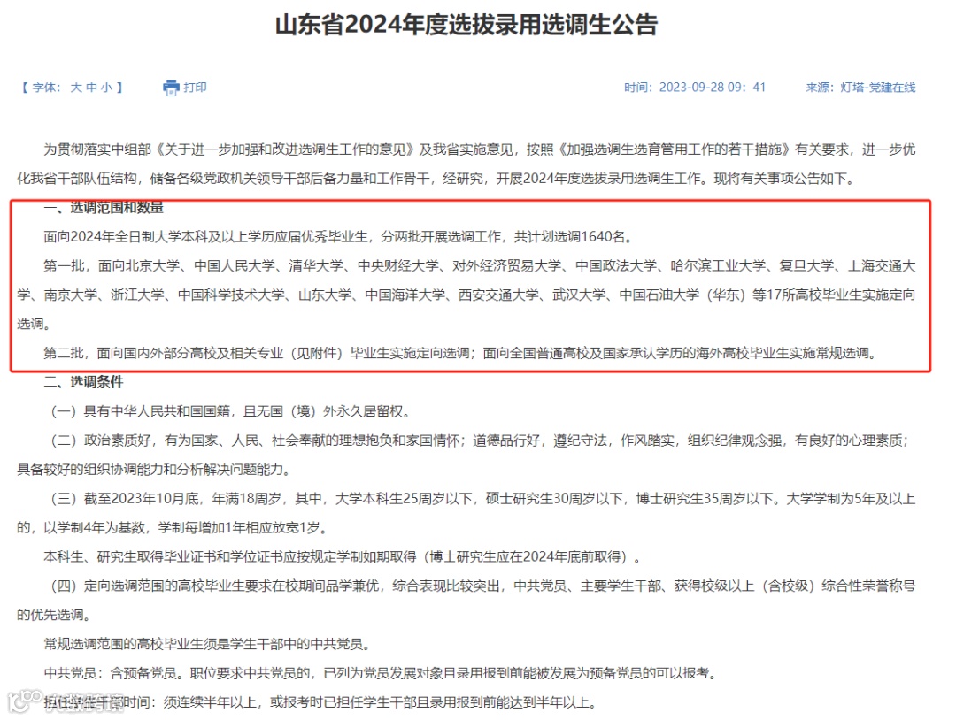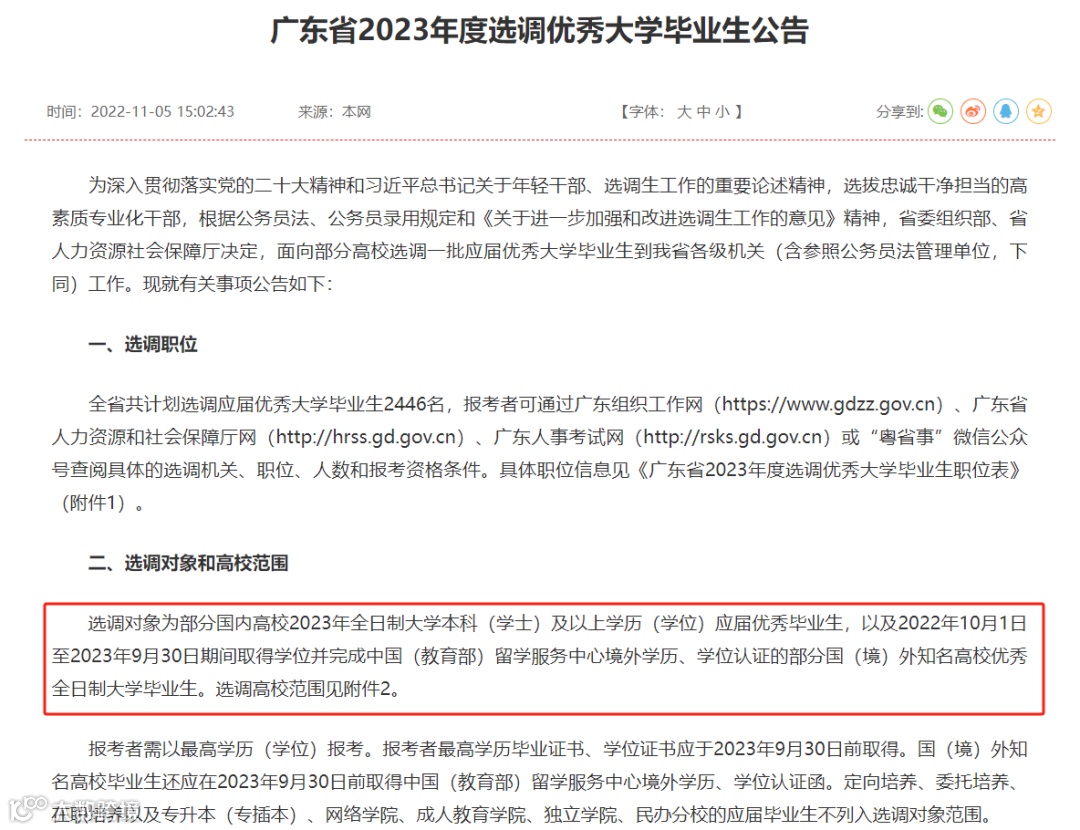 * 以下为广东2023选调信息,2024年信息暂未公布