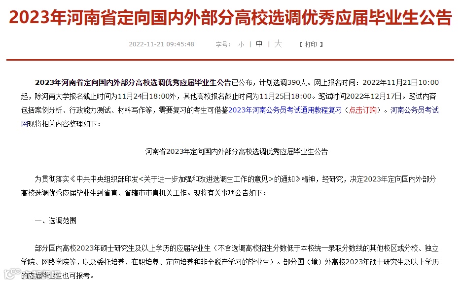 * 以下为河北省2023选调信息,2024年信息暂未公布