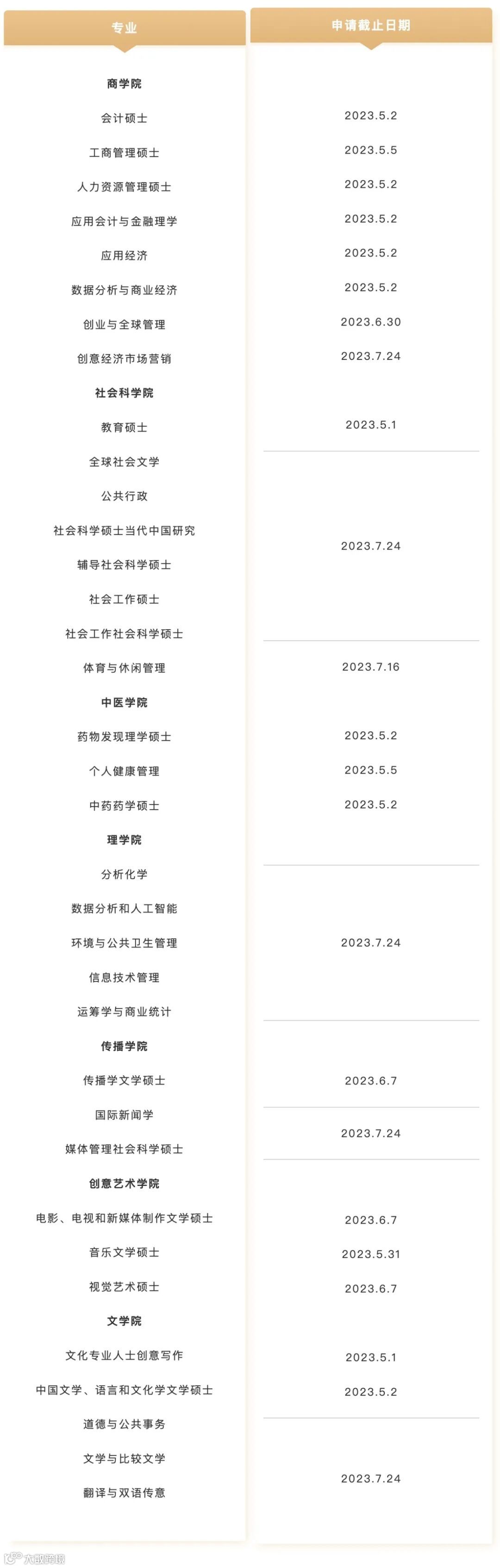 大部分学院目前正处于第三轮申请中,各学院最终申请差不多在6月初会关闭。
