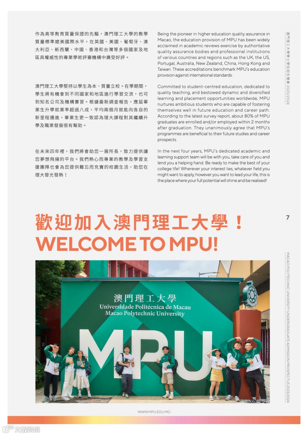 受世界权威学术评审机构认可的澳门理工大学,是亚洲首间通过英国高等教育质量保证局(QAA)院校评鉴的澳门高校,大部分课程已获全球知名的学术或专业机构的认证,教学质量与世界一流大学看齐,部分课程毕业生更可申请全球认可的专业人员资格,学术水平备受肯定。