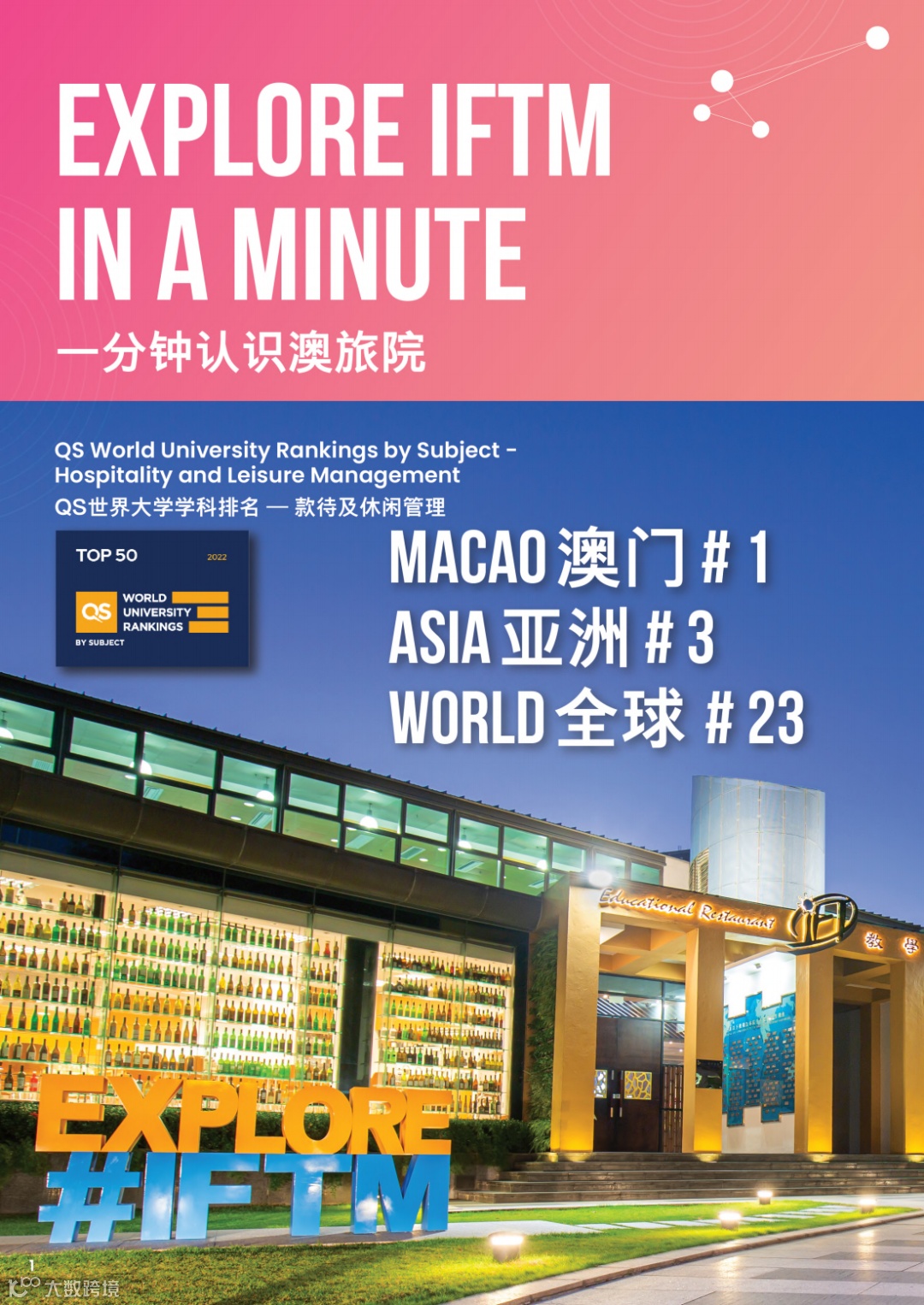 澳门旅游学院于1995年成立,是一所隶属于澳门特别行政区政府社会文化司的公立高等教育机构,提供一系列旅游范畴的学位课程和专业培训,包括酒店、旅游、文化遗产、会展、零售及市场推广、休閒娱乐、康体活动、文化创意及厨艺等。