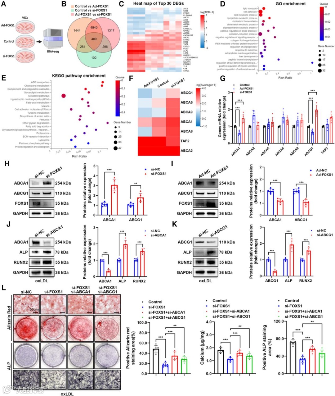 图2 FOXS1通过抑制ABCA1和ABCG1介导VICs的成骨分化