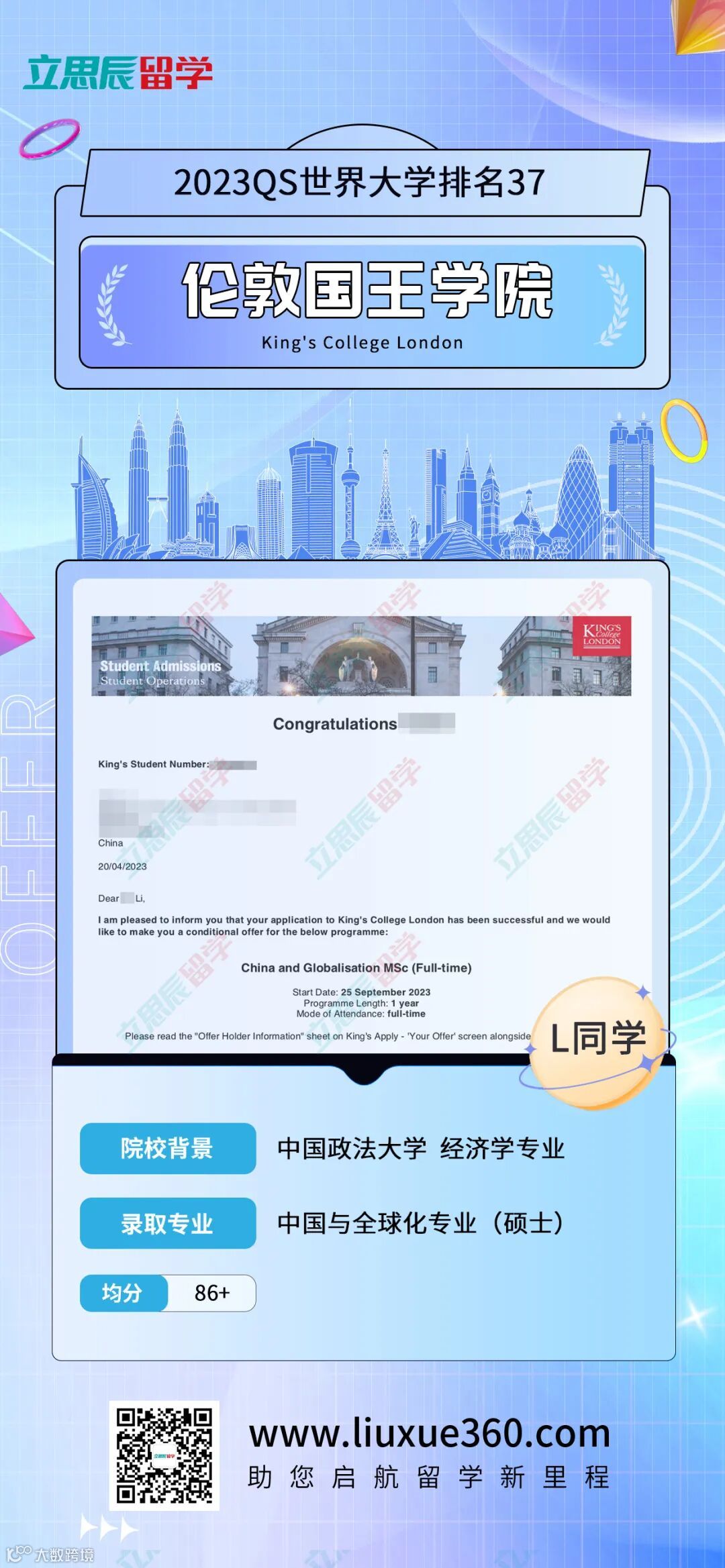 伦敦国王学院常年在世界各大高校排行榜上位于前50名,是一所享誉世界的历史名校。