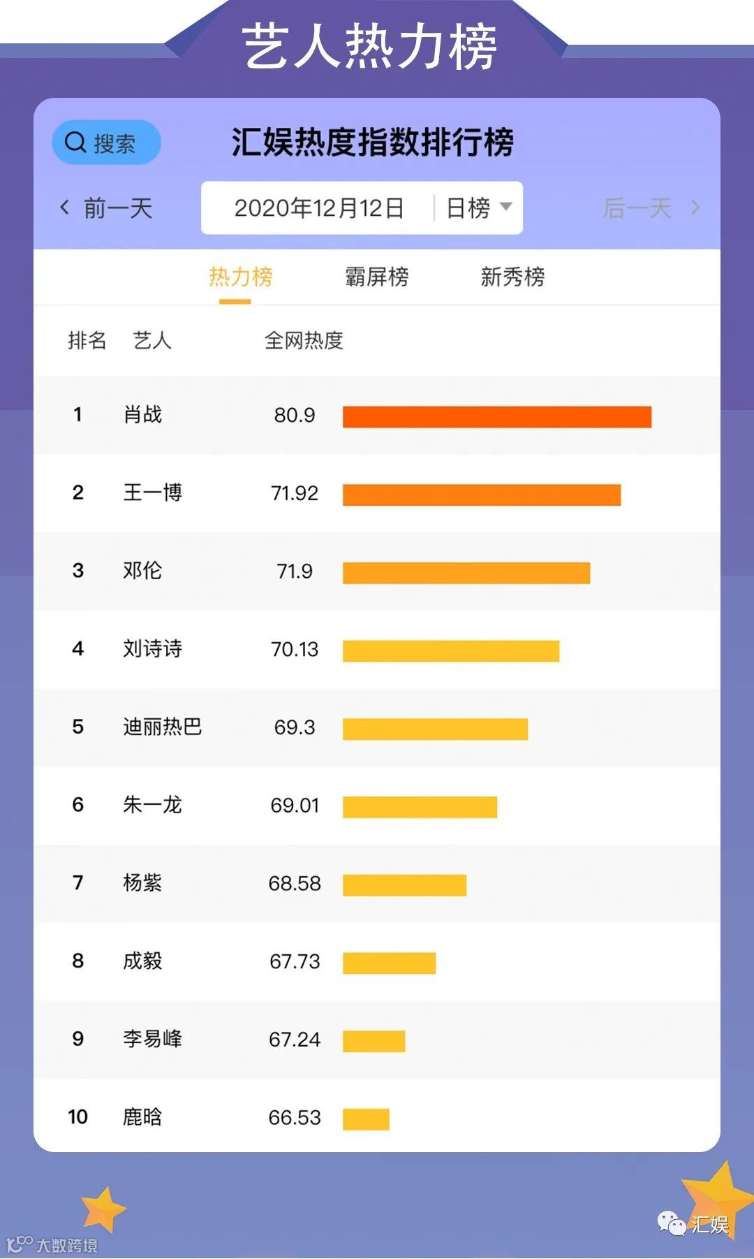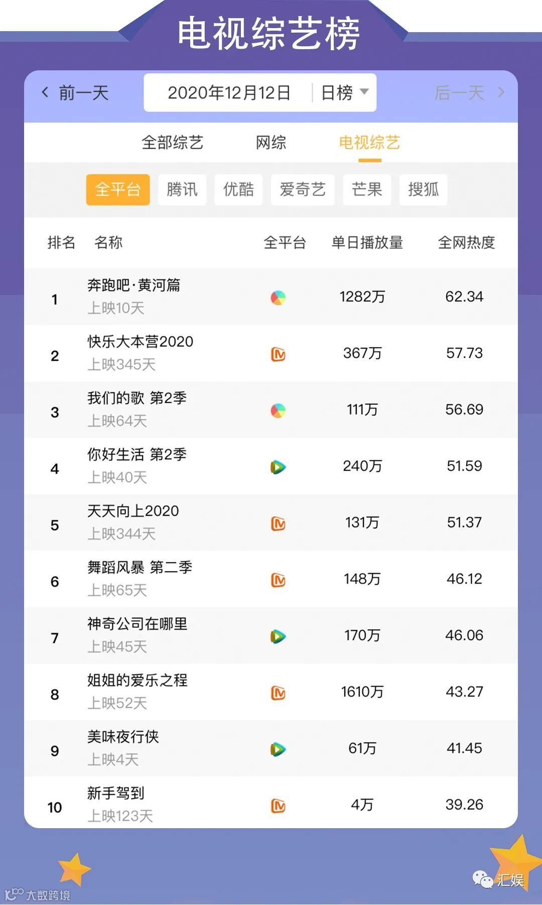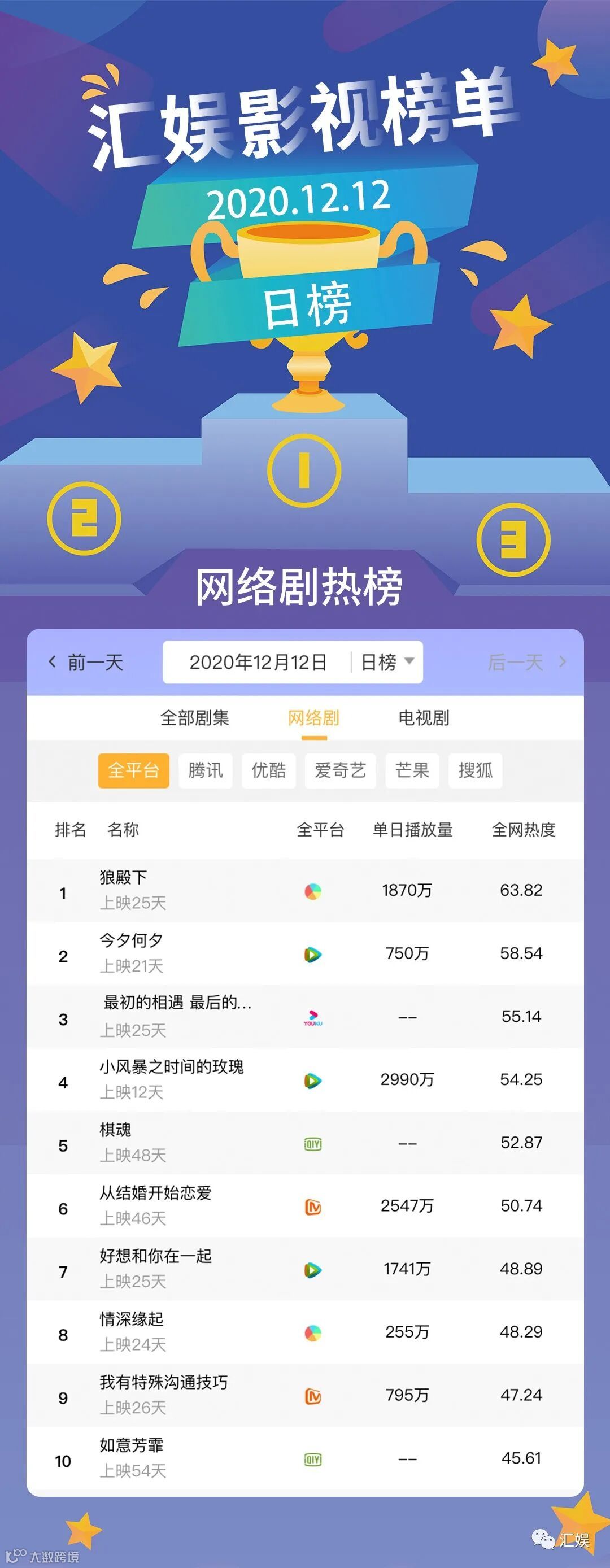 汇娱榜单 | 2020.12.12 今日全网榜单准时送上