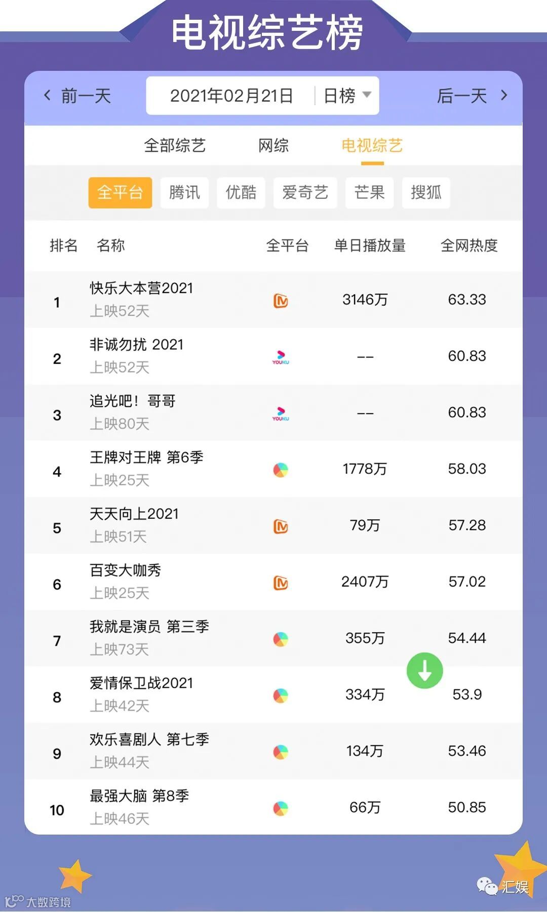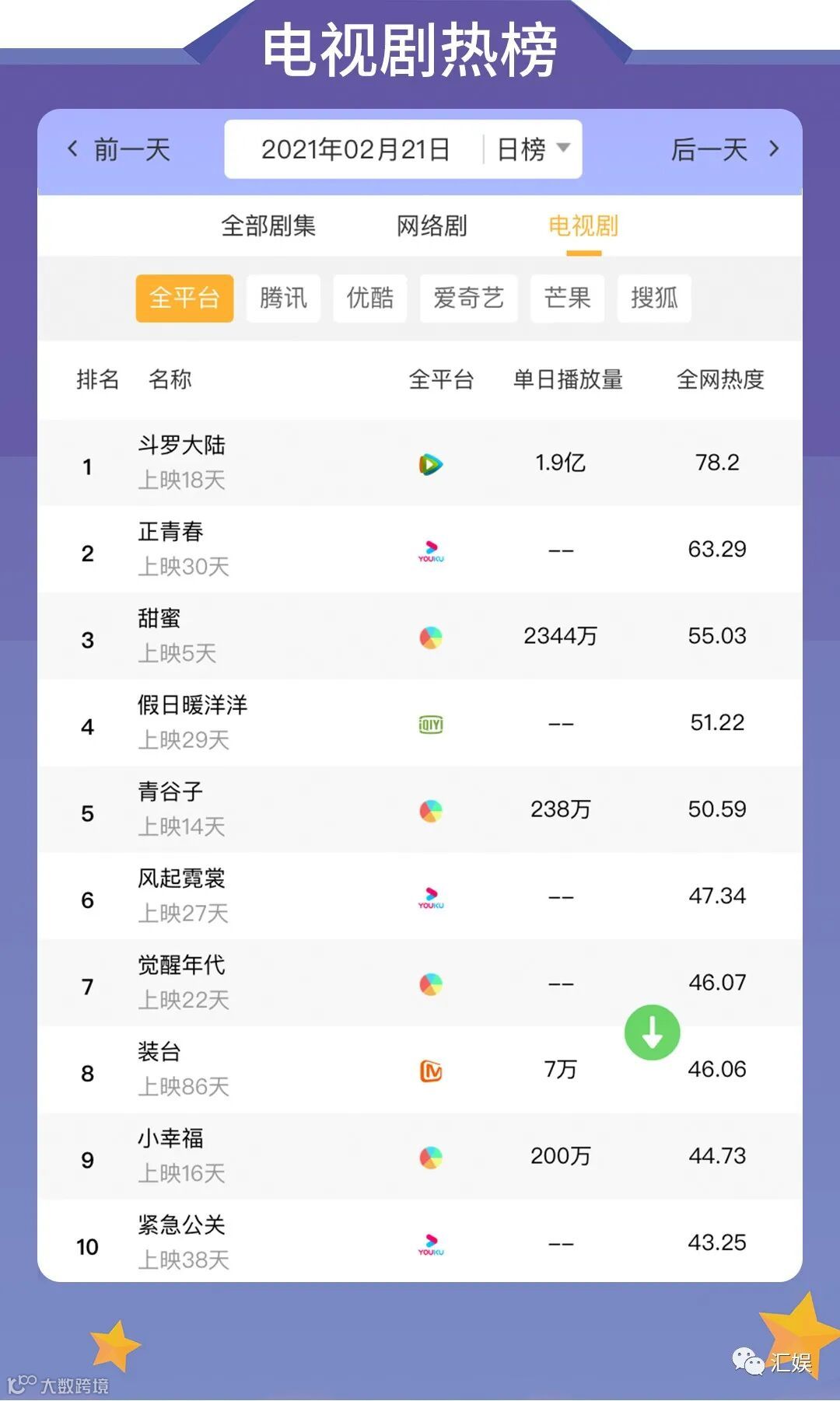 汇娱榜单 | 2021.02.21 全网热度榜单