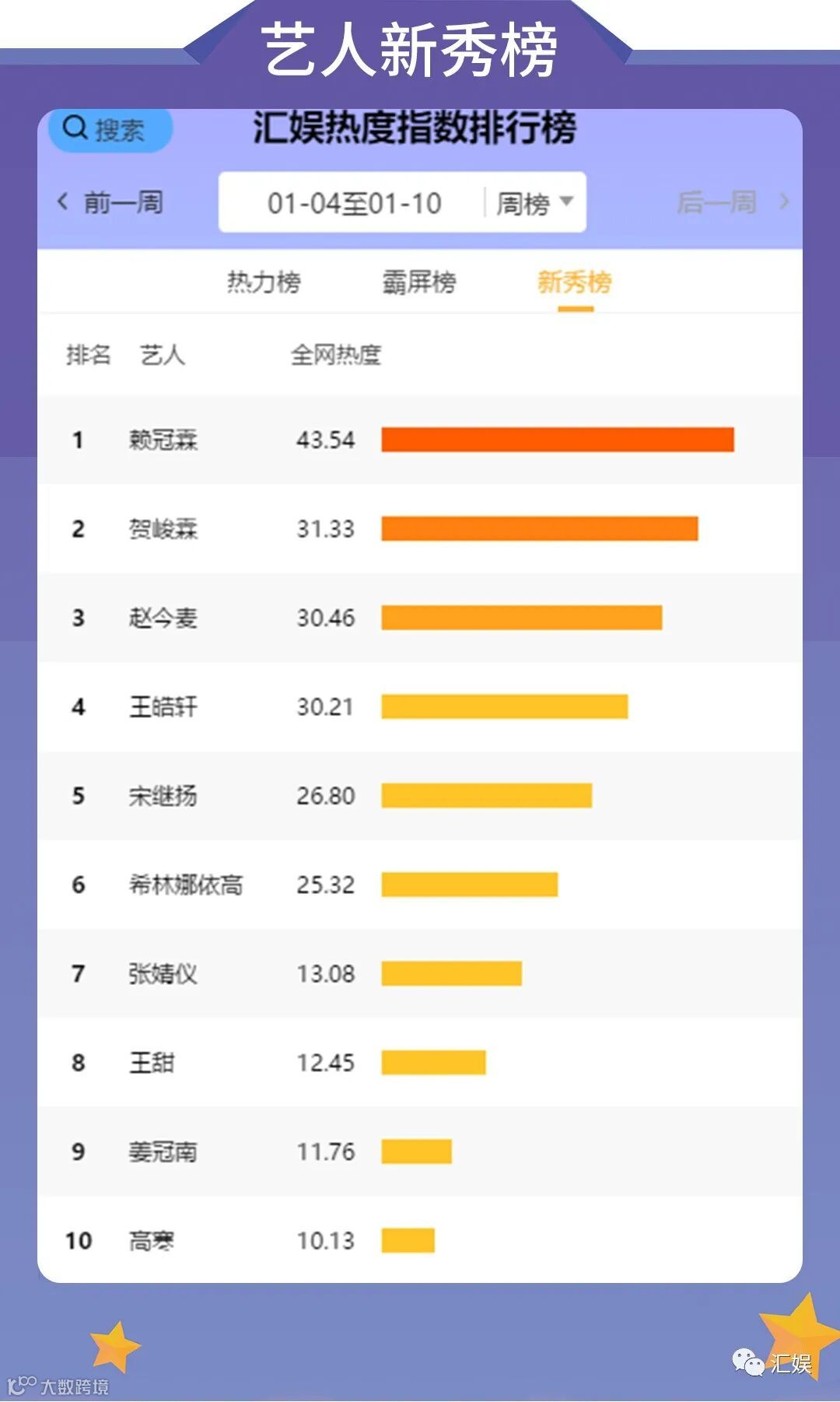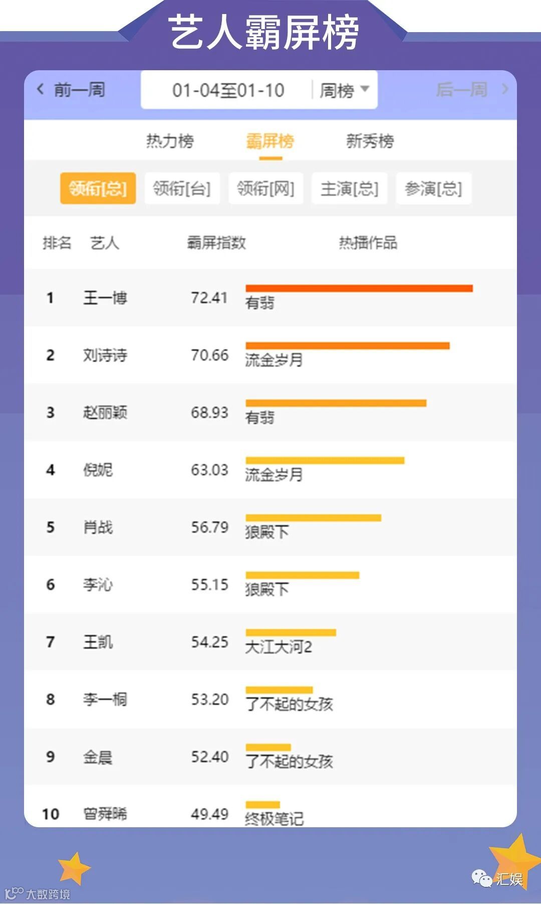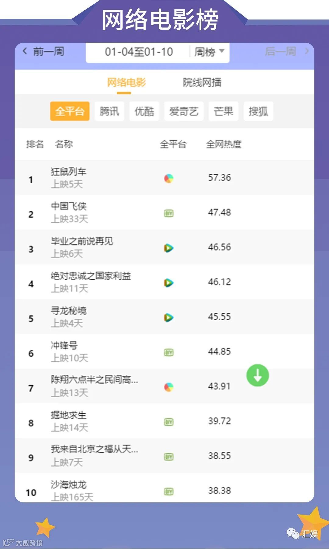 汇娱榜单 | 2021.01.04-01.10 一周全网热度榜单