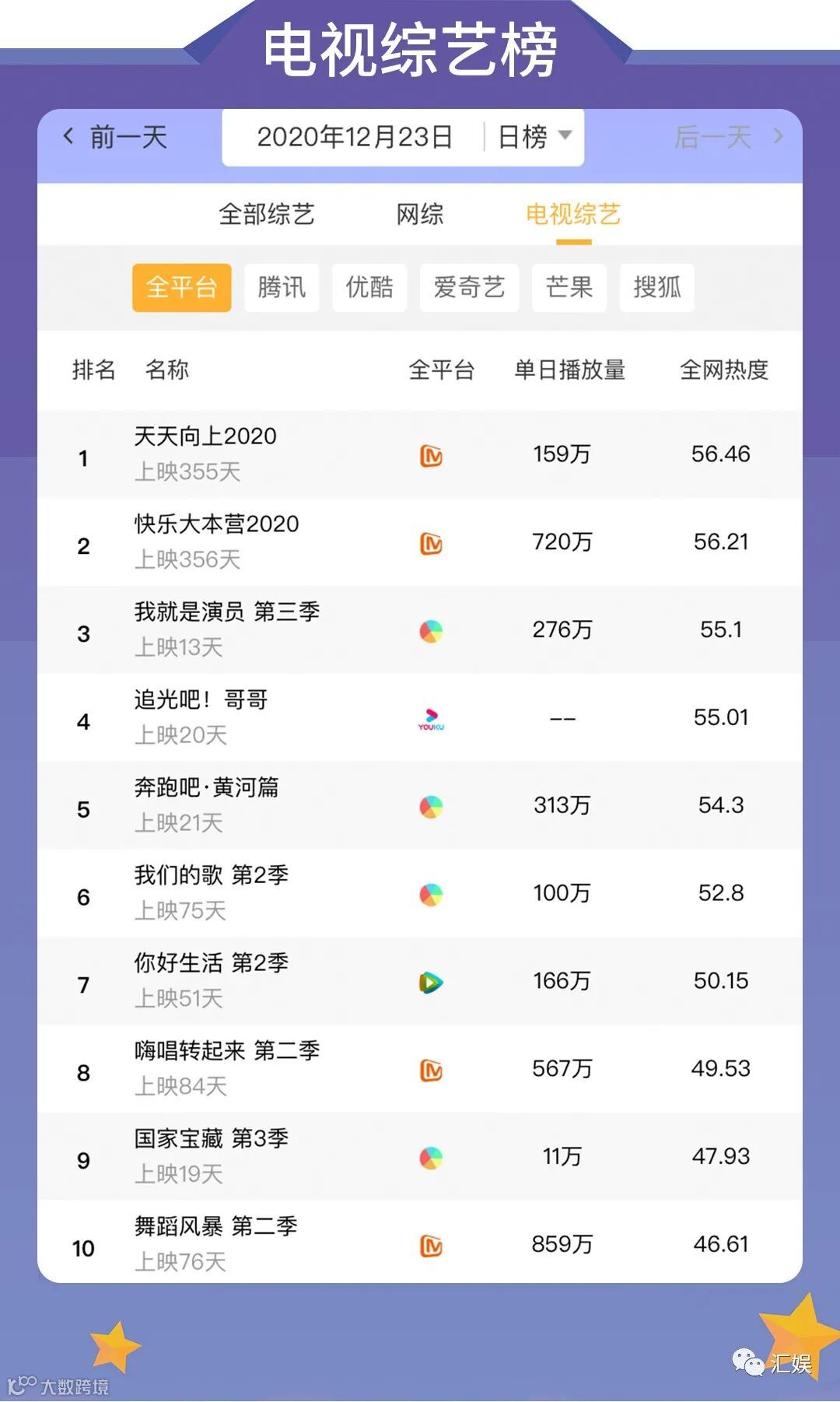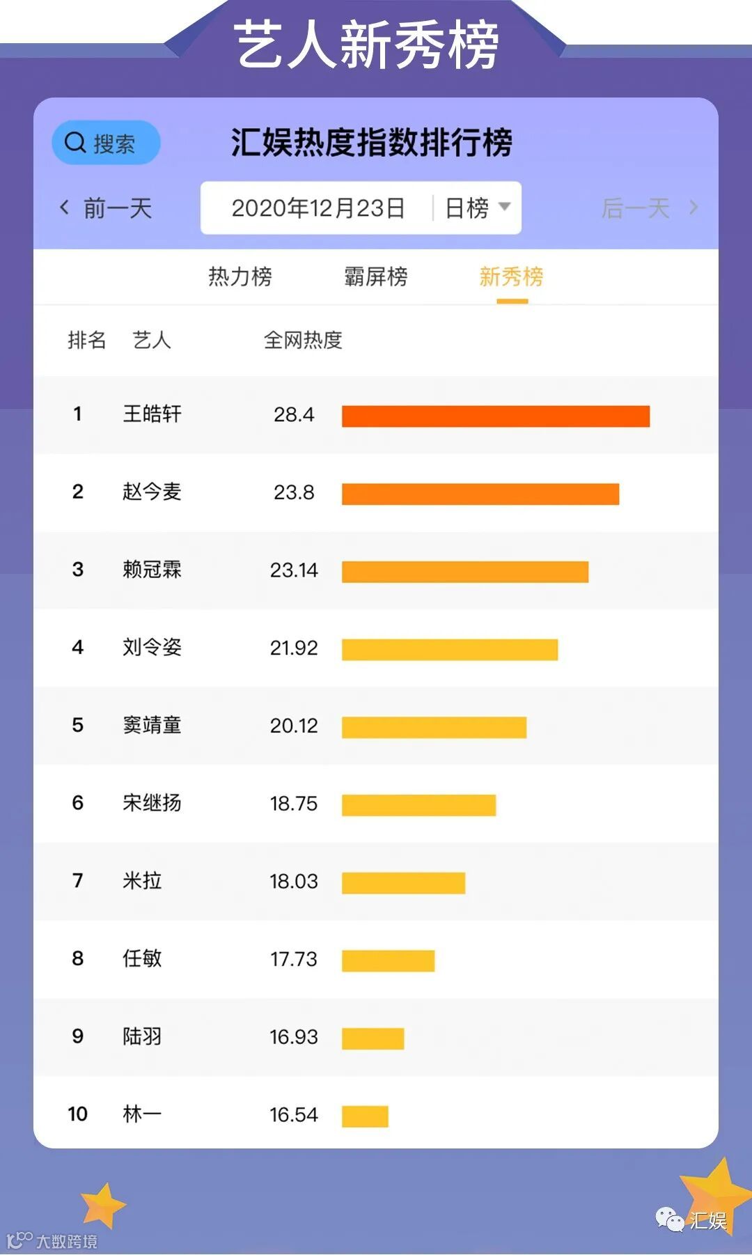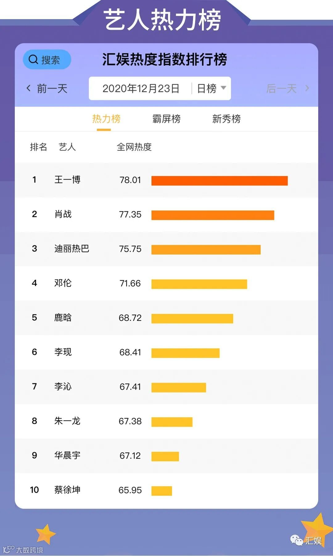 汇娱数据 | 2020.12.23 全网热度榜单请查收~
