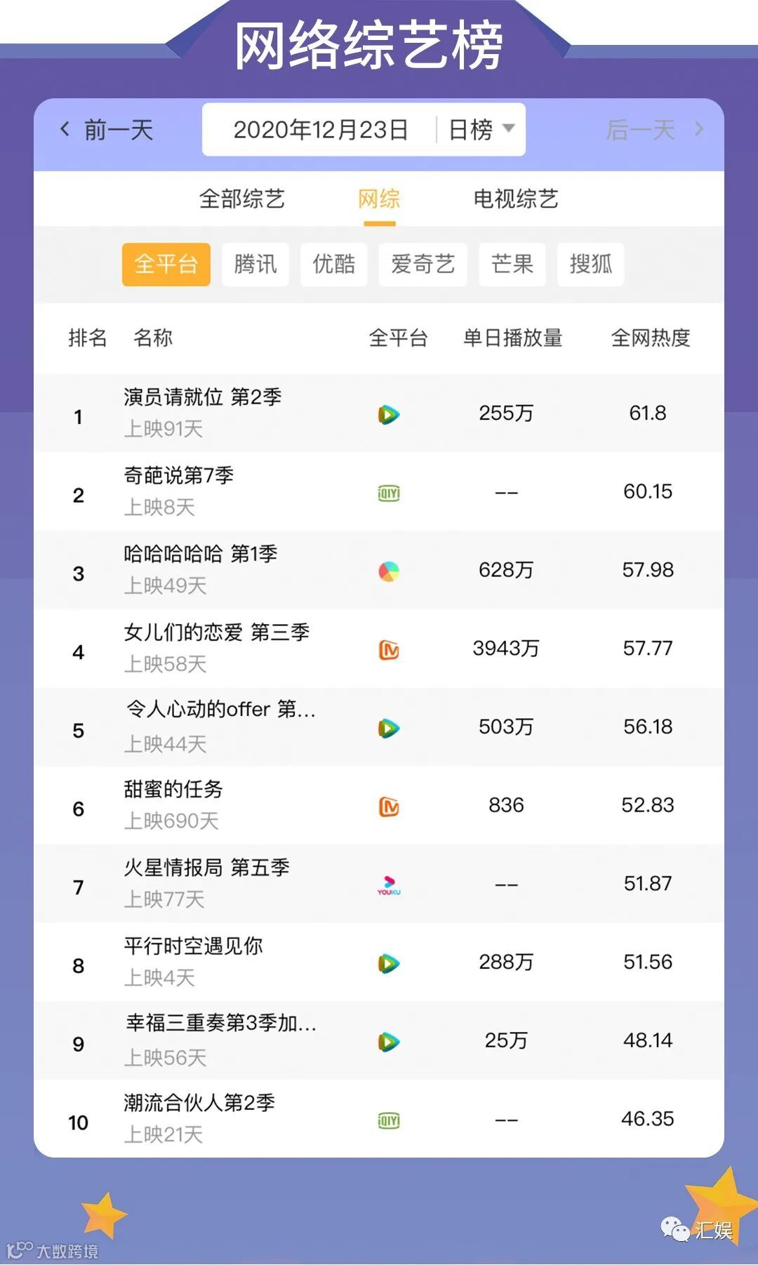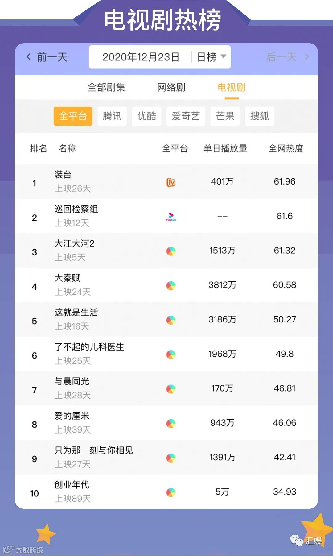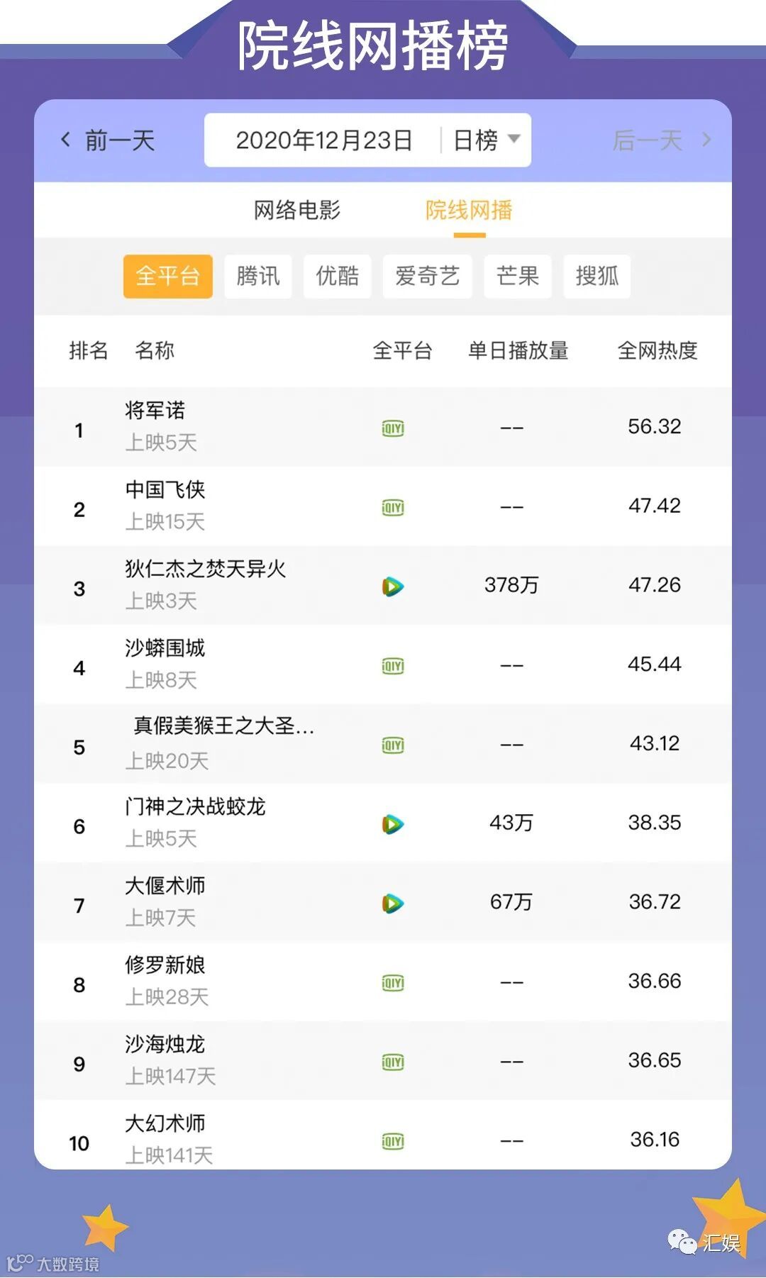 汇娱数据 | 2020.12.23 全网热度榜单请查收~