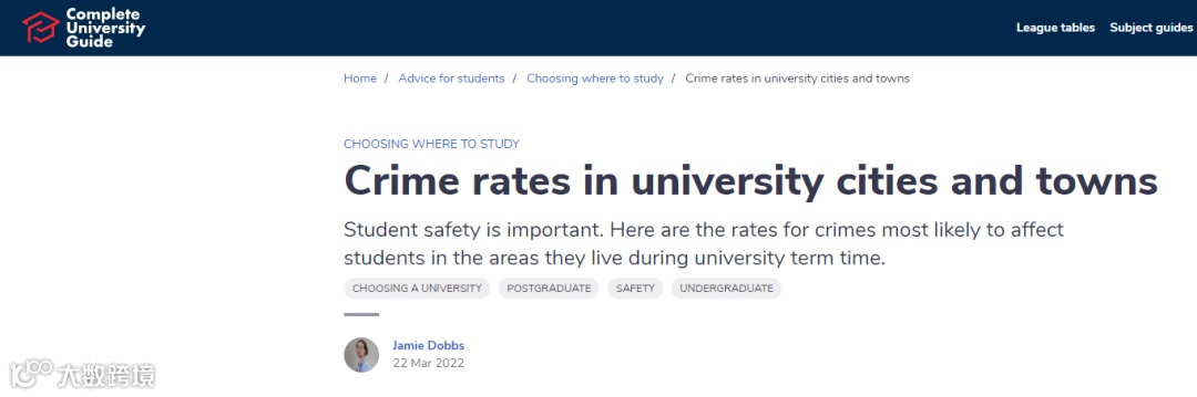 英国著名排名网站《完全大学指南》(CUG)就结合英国警察局、英国国家统计局等机构的数据,整理出了英国大学周边治安排名!