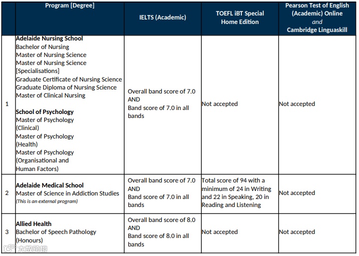 但需要注意的是以下专业不接受托福家考或PTE Online考试成绩。
