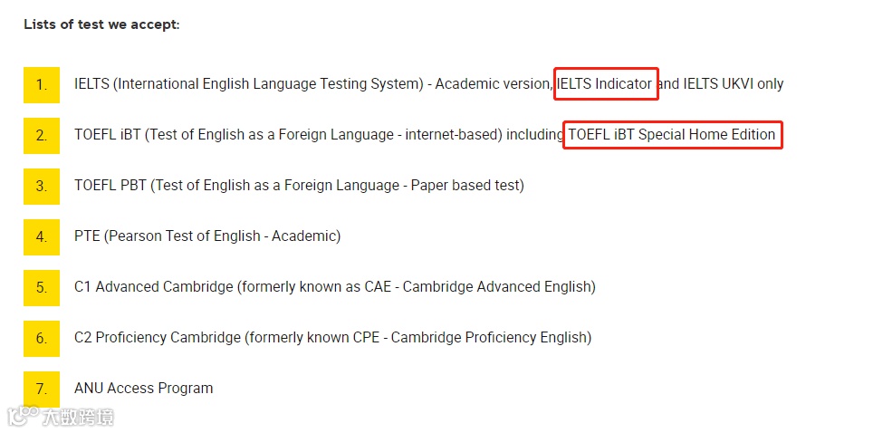 ANU在22fall还接受IELTS Indicator和托福家考,不接受IELTS Online和PTE Online,但23fall是否还接受,还要看学校具体通知。
