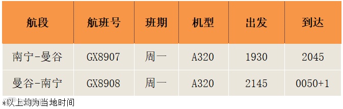 海航航空集团旗下北部湾航空将于2月6日起恢复南宁直飞曼谷的国际航线,班期暂定为每周一执行1个往返航班。