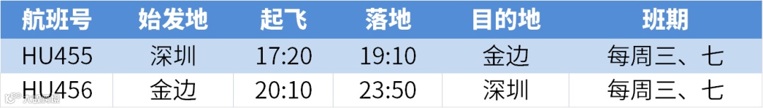2月11日起,深圳往返金边航班由每周一、周五增加到每天一班。