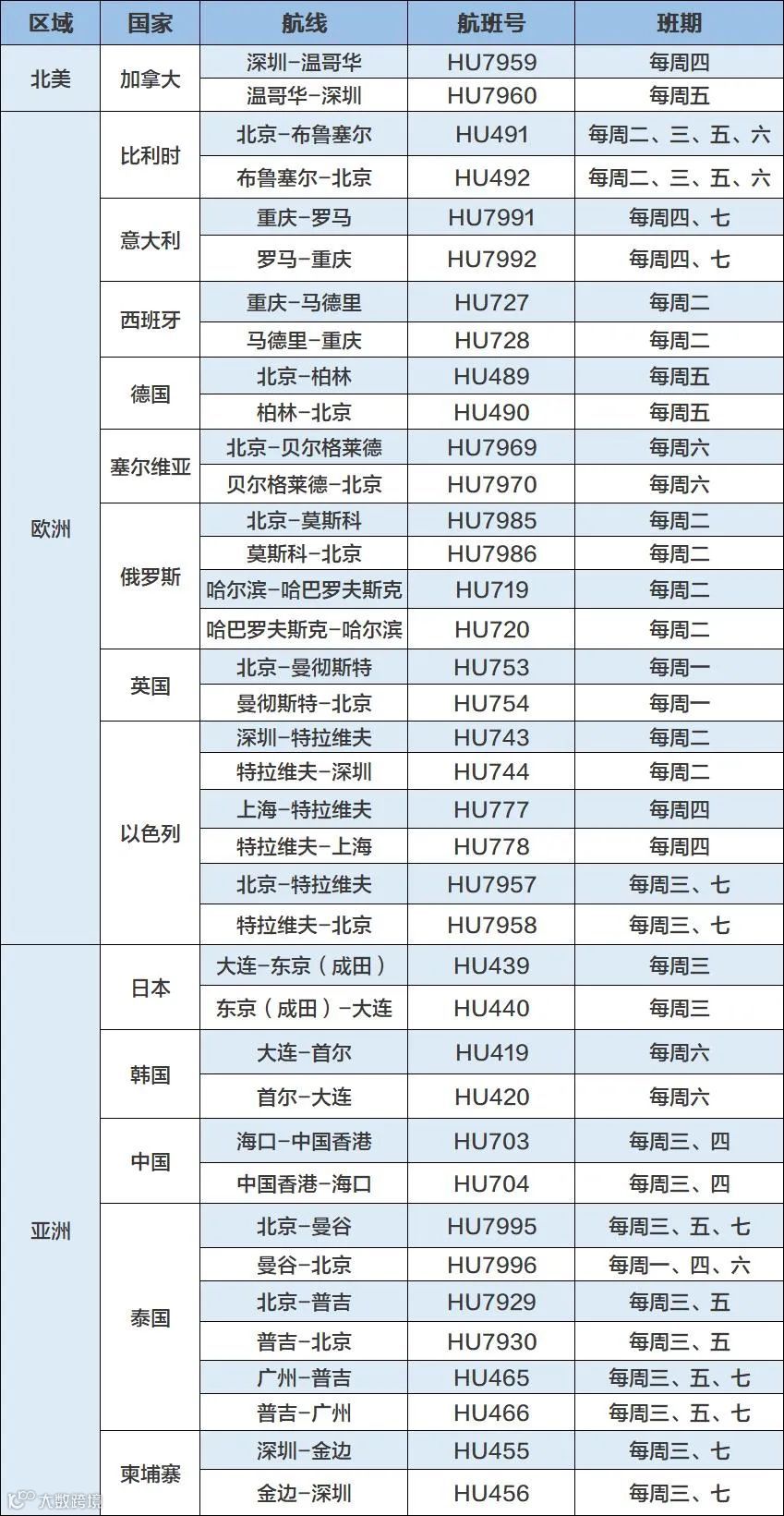 注:以上航班均为当地时间,如遇航班变动,请以实际查询为准。