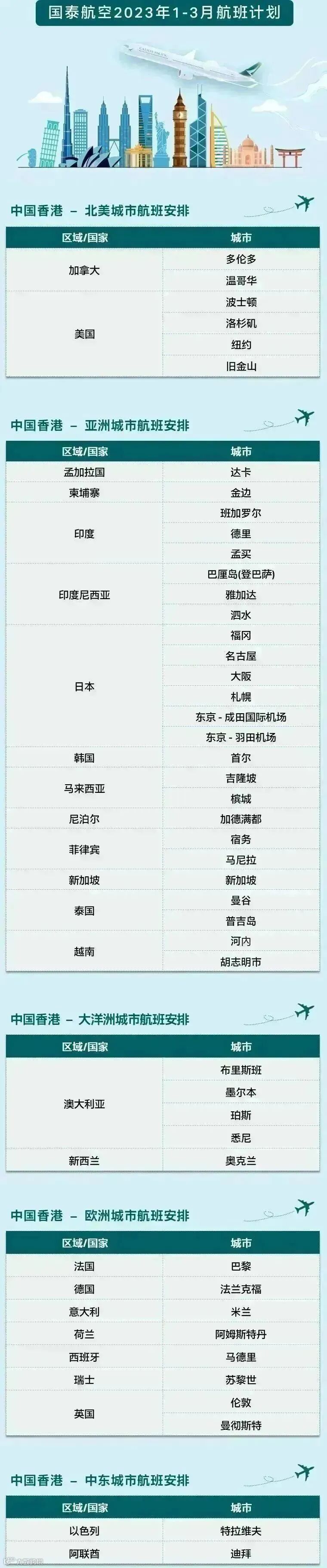 以下是国泰航空1-3月航班计划: