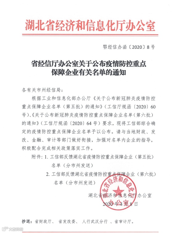 4月8日,国家工信部发布“新冠肺炎疫情防控重点保障企业(第五、六批)”名单,武汉物易云通网络科技有限公司入选第五批新冠肺炎疫情防控重点保障企业名单。