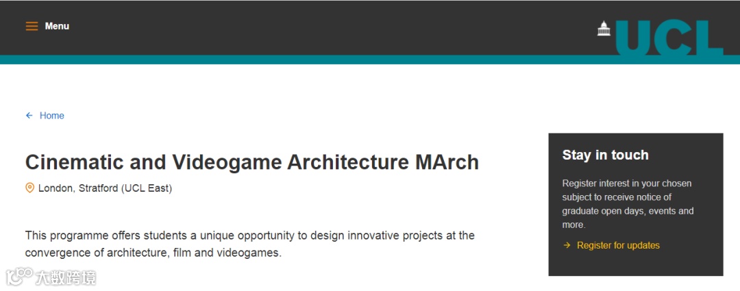 数字技术的快速发展使建筑、电影和电子游戏这几个以往互不相干的领域比以往任何时候都更加紧密。该项目是一个独特的跨学科课程,是英国第一个融合了建筑、电影和视频游戏的创新项目。