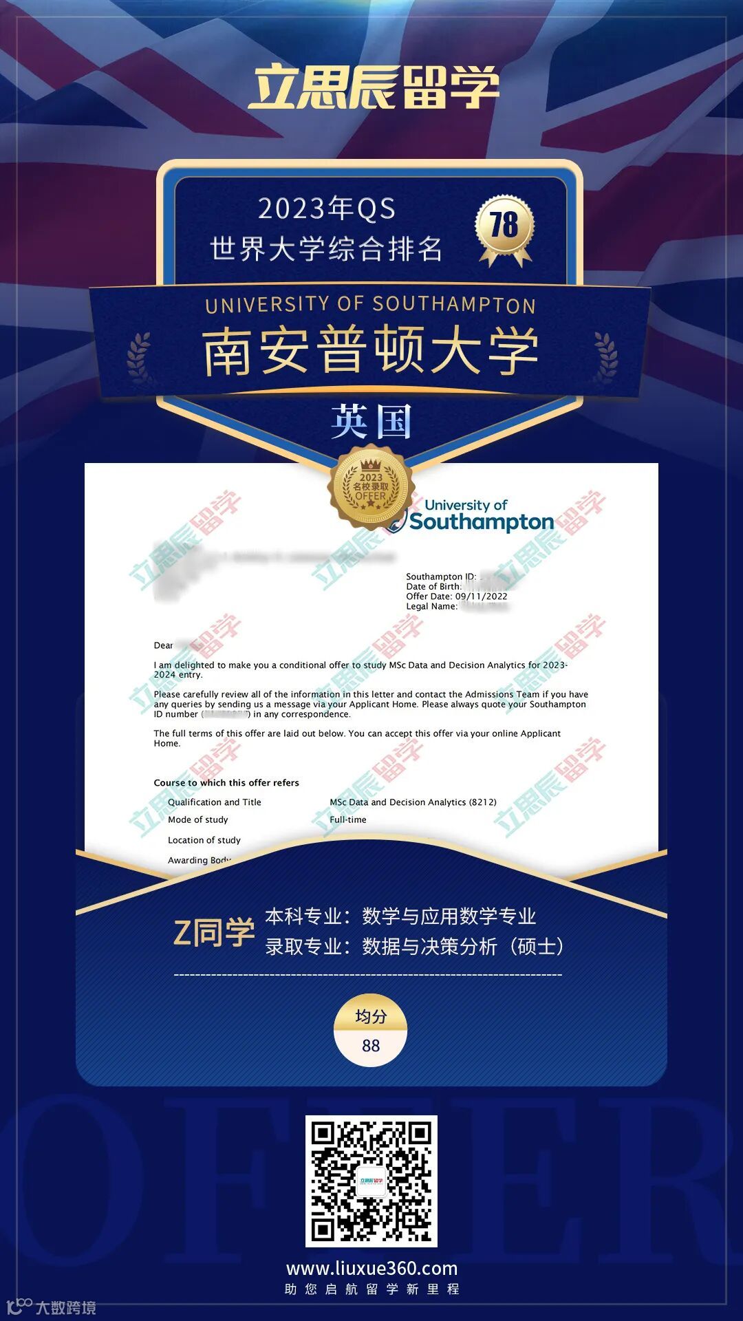 南安普顿大学是英国大学专业评级中唯一一所每个理工部门都收到五星研究评级的大学,被公认为世界顶尖理工大学之一,拥有王牌ECS学院。