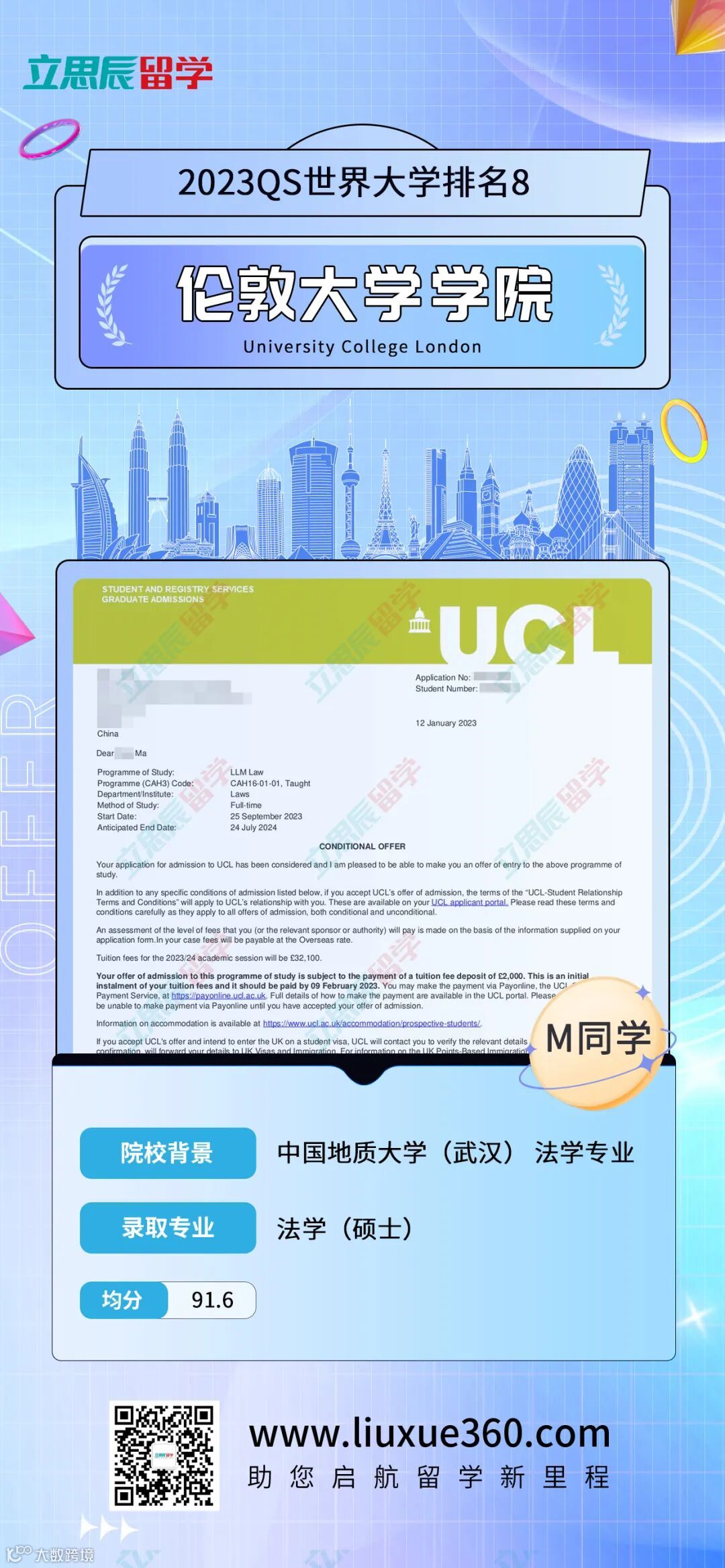 在最新的世界排名中,UCL位居2023年QS世界大学排名第8,2023泰晤士高等教育世界大学排名第22,2022软科世界大学学术排名第18。