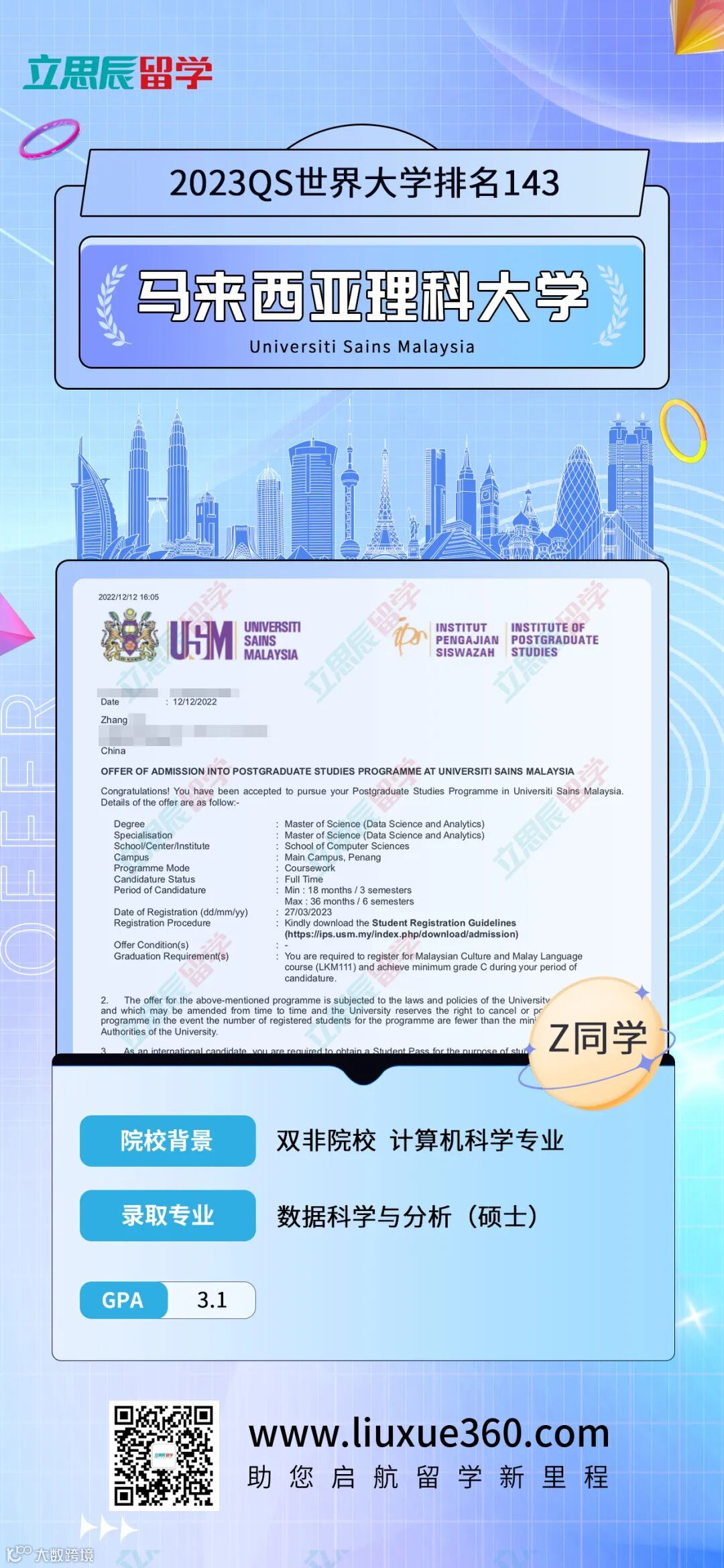 马来西亚理科大学(University of Science Malaysia,缩写USM,简称理大)成立于1969年,是马来西亚政府建立的第二所公立大学,也是全马公认最顶尖的五所综合性研究型大学之一,全球第7个被联合国大学指定为可持续发展专业技术教育区域中心的大学,且受中华人民共和国教育部教育涉外监管信息网认证。