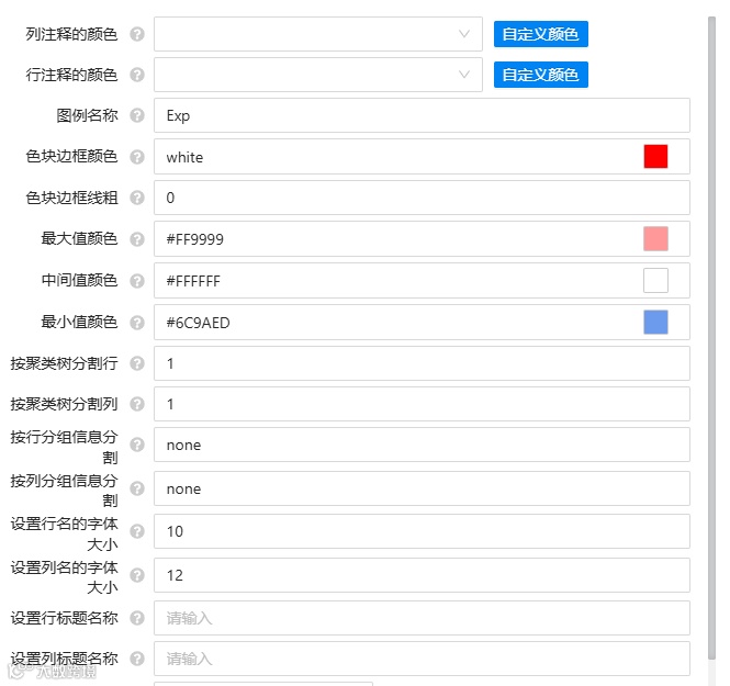 示例中结果图片的基因名出现重叠,并且没有像图表说明中的示例图片中对行和列进行分隔,可以通过设置参数进行调整,如下: