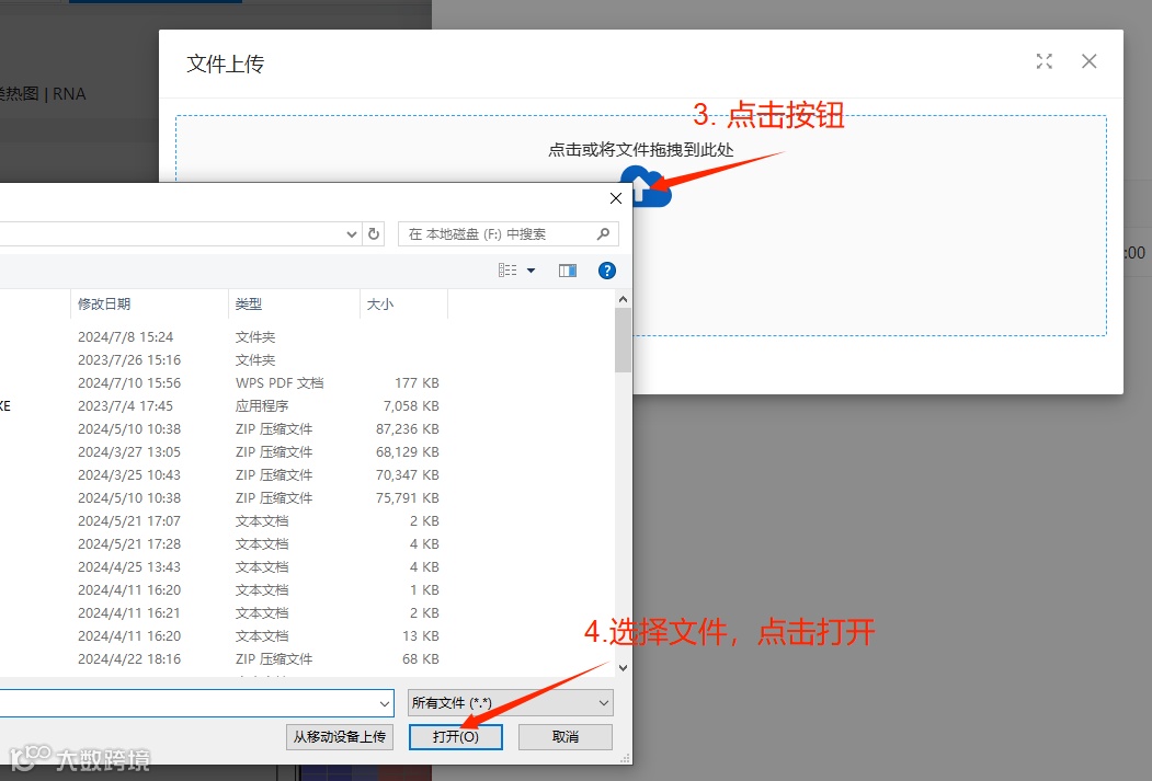 3. 点击上传文件的按钮,在弹出的对话框中选择准备好的文件,可同时上传该工具所需的三个文件;