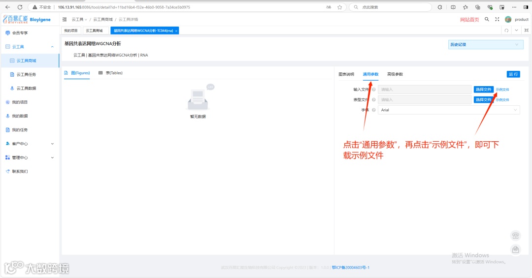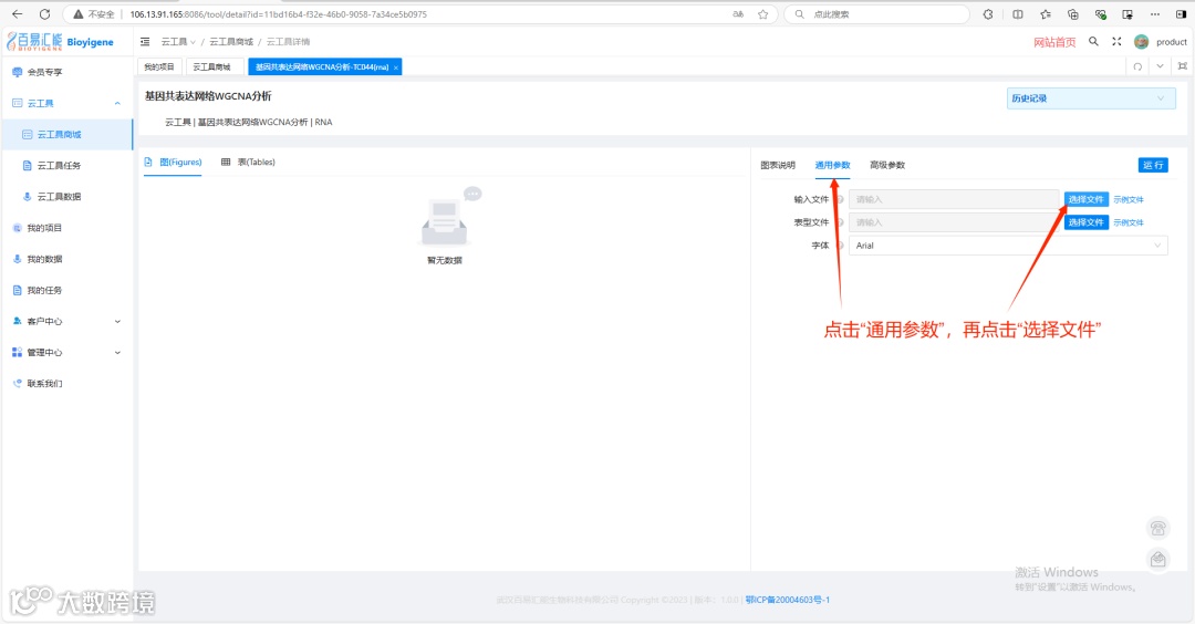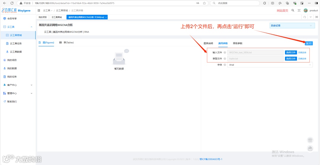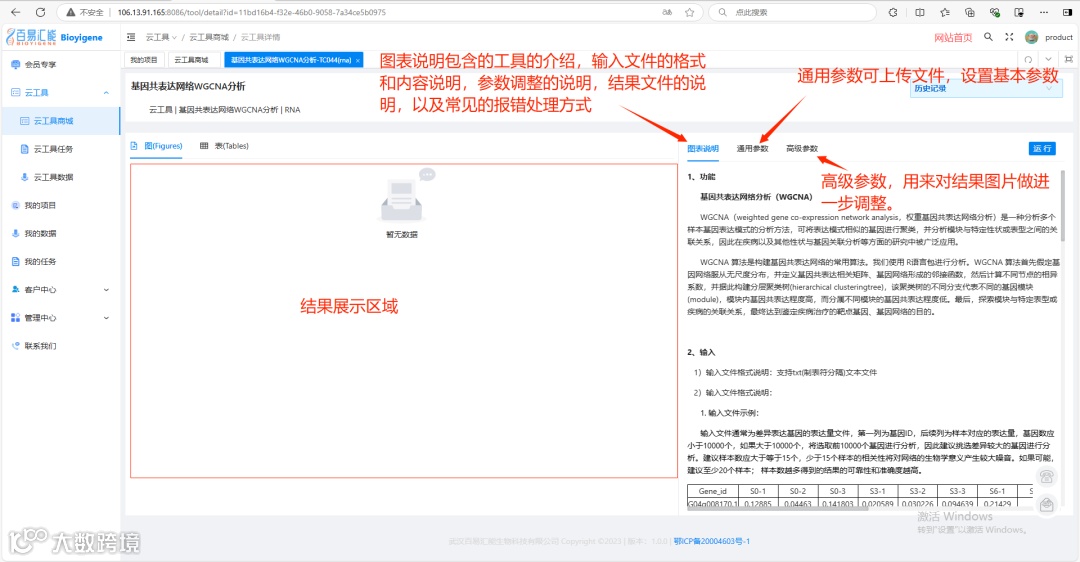 进入云工具“基因共表达网络WGCNA分析”后的界面如下: