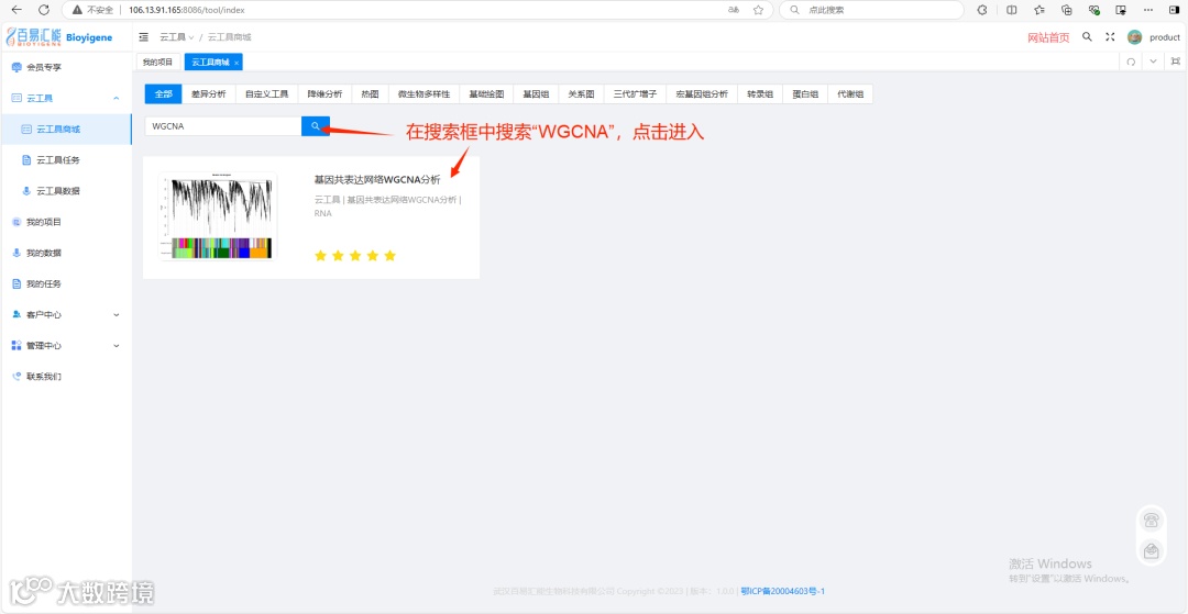2. 在搜索框中搜索“WGCNA”,点击进入。