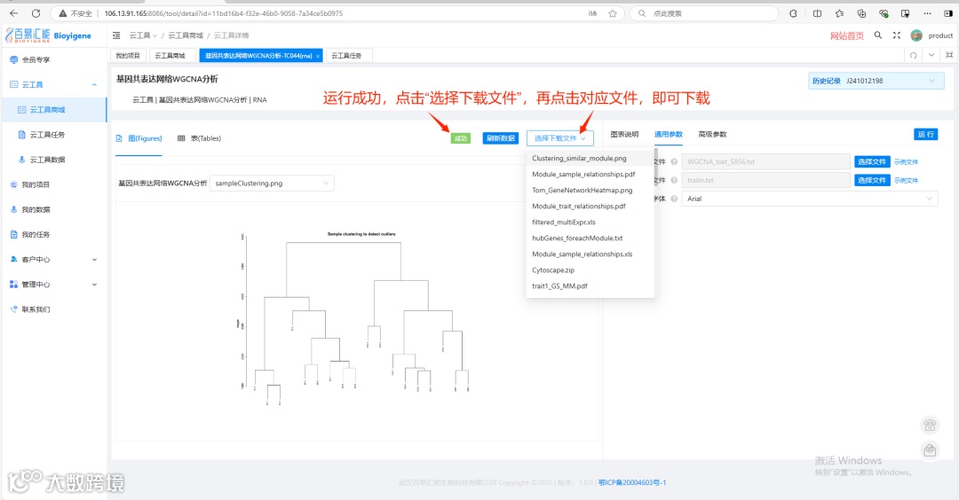 5. 运行成功!点击“选择下载文件”即可进行下载。(如果输入的基因和样本数目较多,运行时间会变长,请耐心等待)。