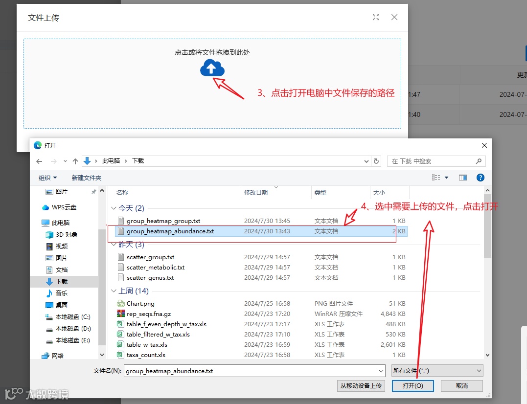 3.点击上传文件的按钮,在弹出的对话框中选择准备好的文件
