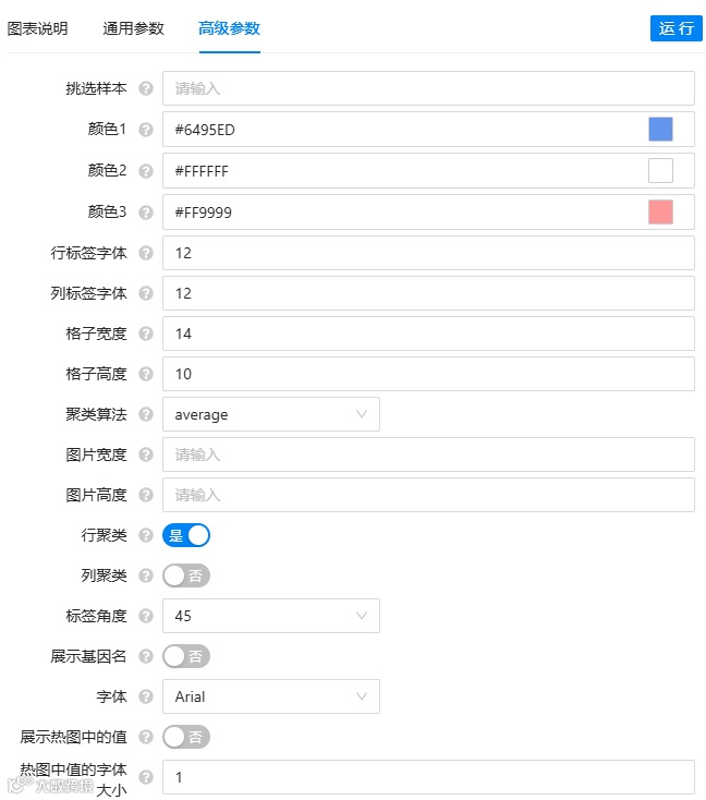 默认情况下,云工具会自动根据输入文件进行调整,如果需要对默认参数绘制出来的结果图片做进一步的调整,可通过点击通用参数或高级参数,设置具体的参数来进行调整,如下所示: