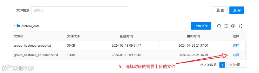 4.上传成功后会跳转到文件列表窗口,点击选择对应的文件(上传后的文件保存在这里,如果之前上传过该工具的文件,可以直接选择之前上传的文件)
