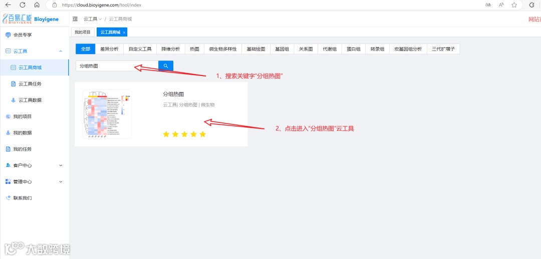 1. 进入云工具网址:https://cloud.bioyigene.com/tool/index