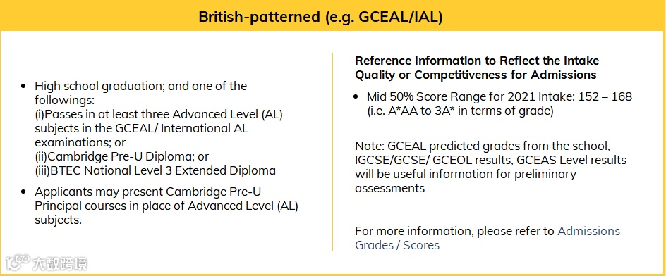 以下要求满足其一即可:IB达到34分及以上;或SAT达到1320及以上;或A-Level达到AAB及以上。
