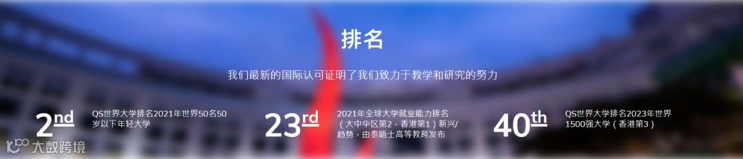 奖学金:港科大提供多种丰厚奖学金。最高金额为:全额学费+55000港币/年的津贴。