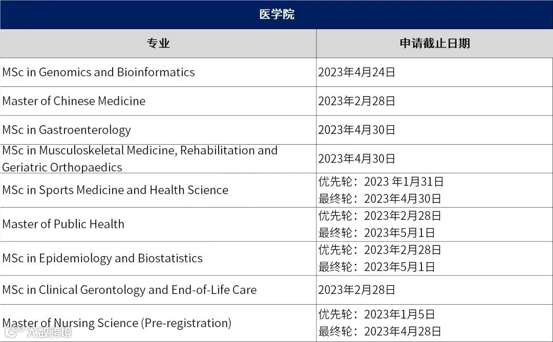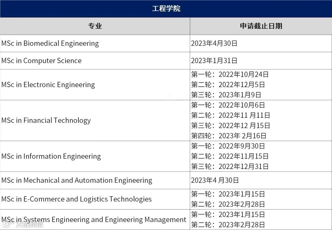 这不,「香港中文大学」官网也更新了新一学年的入学申请信息,目前除教育学院的硕士课程外,其他的全日制授课型硕士课程都已开放23fall入学申请,申请截止日期如下: