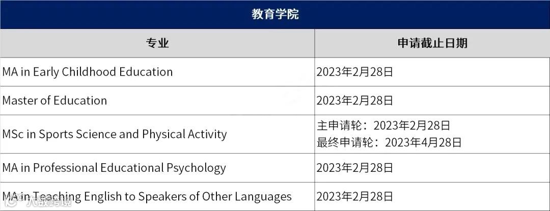 教育学院的硕士课程23fall申请将在2022年10月17日开放申请,截止日期如下: