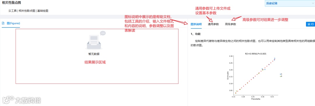 进入云工具“相关性散点图”页面如下: